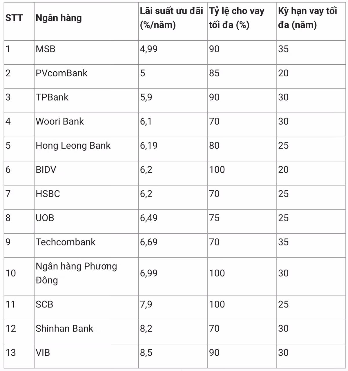 Theo khảo sát của chúng tôi tại 13 ngân hàng trong nước, lãi suất vay mua nhà trong tháng 6 dao động 4,99% - 8,5%/năm. Ngoài Shinhan Bank có động thái tăng lãi suất cho vay, các ngân hàng khác vẫn duy trì lãi suất cũ.