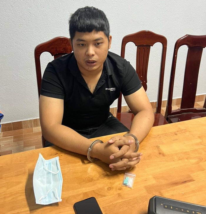 Được biết, trước đó, trong quá trình tuần tra nghiệp vụ, khoảng 22h ngày 24/2, Công an xã Phi Tô bất ngờ kiểm tra Đào Khánh Duy (21 tuổi), thường trú tại phường Long Bình, TP Biên Hòa, tỉnh Đồng Nai đang đang di chuyển trên đường liên xã từ thị trấn Đinh Văn vào xã Phi Tô, thì phát hiện trên người đối tượng có 1 gói nylon bên trong chứa chất tinh thể màu trắng và 5 viên nén màu xanh nghi là ma túy.