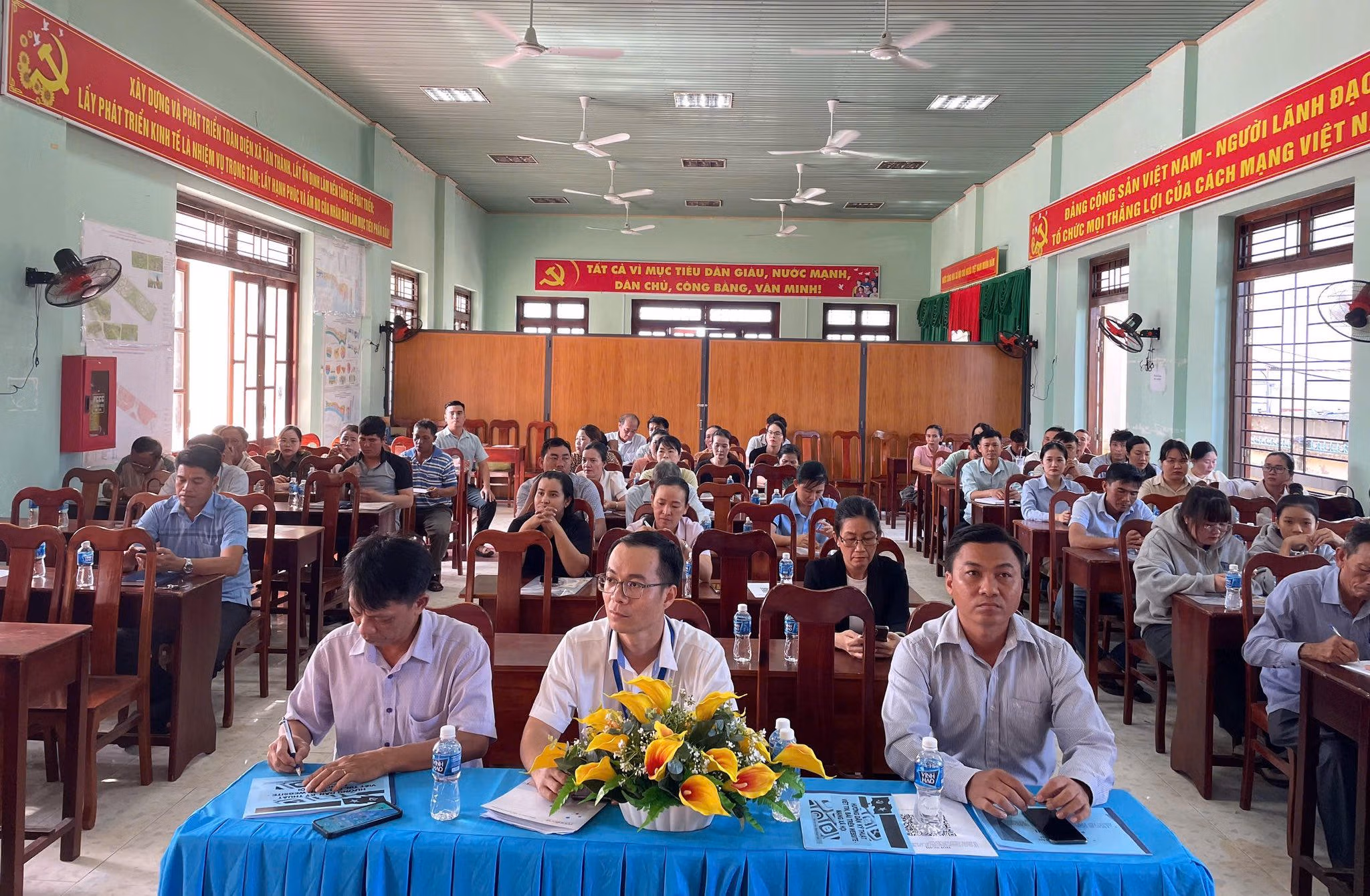 Gần 100 tuyên truyền viên cơ sở tại các thôn, cán bộ Trung tâm Dịch vụ tổng hợp và Phòng Văn hóa - Xã hội xã tham dự tập huấn.