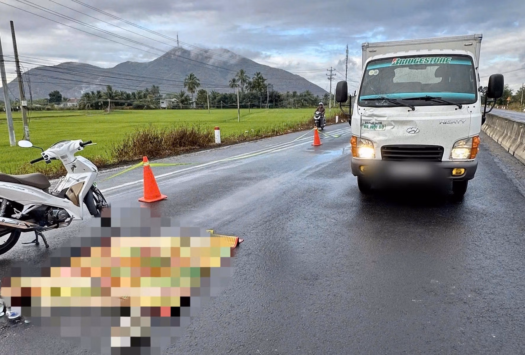 Cú va chạm mạnh khiến nạn nhân tử vong tại chỗ, thi thể nạn nhân được phát hiện nằm giữa làn đường, cách không xa vị trí xe tải dừng sát dải phân cách cứng.