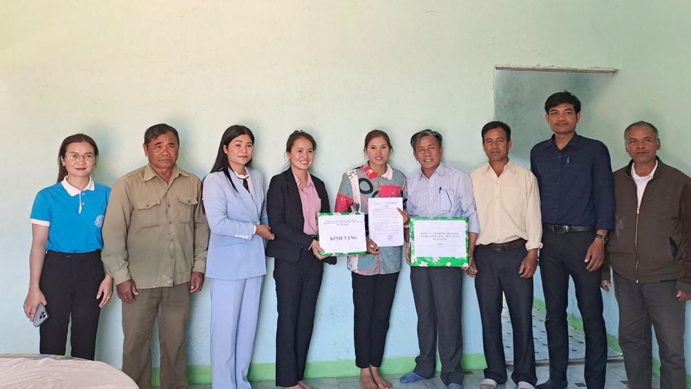 Nhân dịp này, chính quyền, các hội đoàn thể xã Tà Hine củng trao những phần quà nhằm chia sẻ mọi khó khăn với các gia đình khi nhận căn nhà mới.