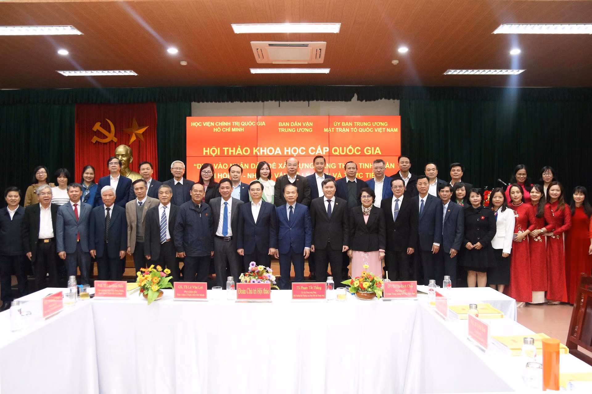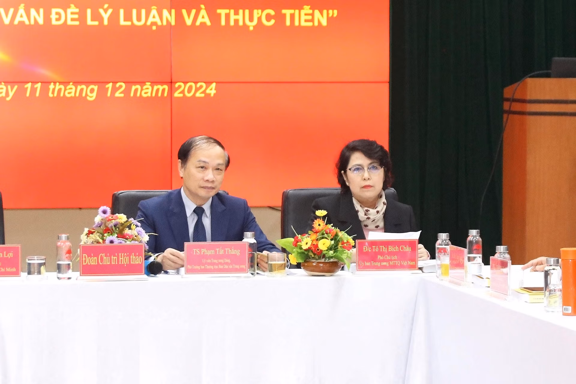 Chủ trì Hội thảo có ông Phạm Tất Thắng, Ủy viên Trung ương Đảng, Phó Trưởng ban Thường trực Ban Dân vận Trung ương; bà Tô Thị Bích Châu, Phó Chủ tịch UBTƯ MTTQ Việt Nam; GS.TS Lê Văn Lợi, Phó Giám đốc Học viện Chính trị quốc gia Hồ Chí Minh; PGS.TS Lâm Quốc Tuấn, Viện trưởng Viện xây dựng Đảng, Học viện Chính trị quốc gia Hồ Chí Minh.