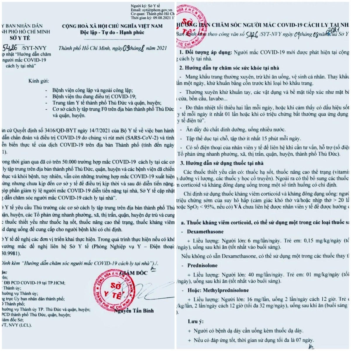 Ngày 9/8, Sở Y tế TP HCM tiếp tục ban hành văn bản hướng dẫn chăm sóc người mắc Covid-19 tại nhà, lần này sở hướng dẫn cho bệnh nhân cách ăn uống, thuốc điều trị.