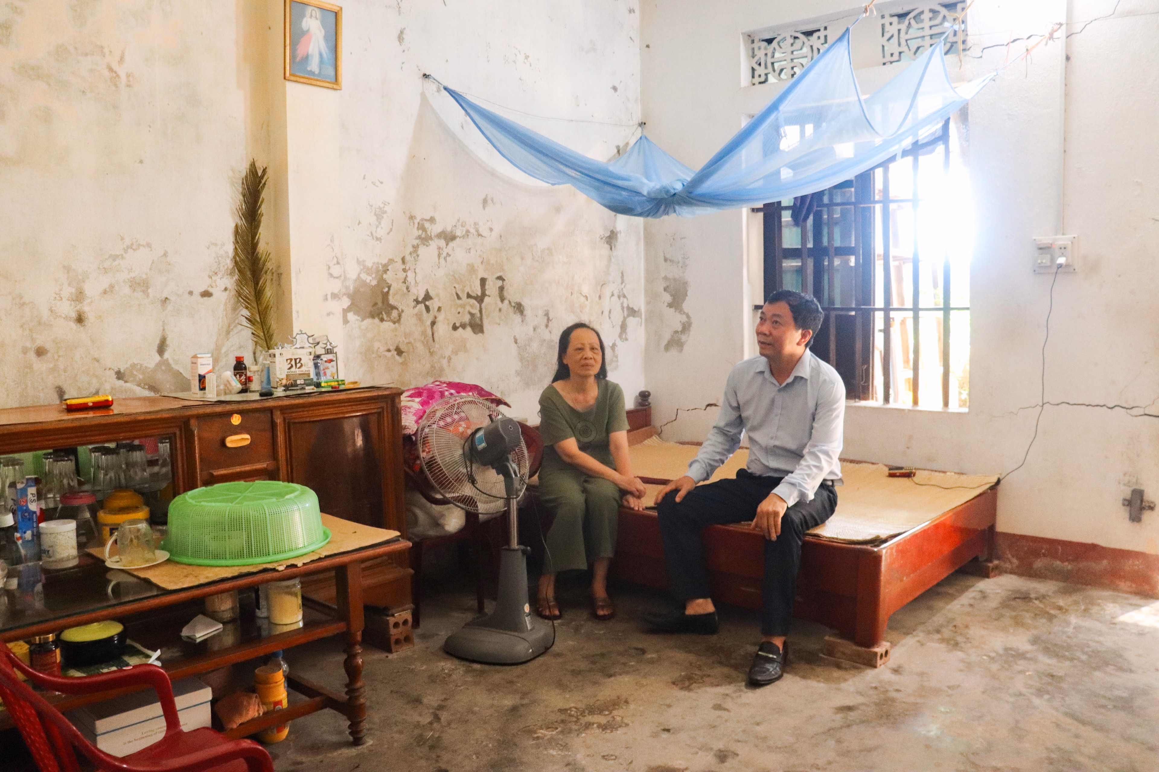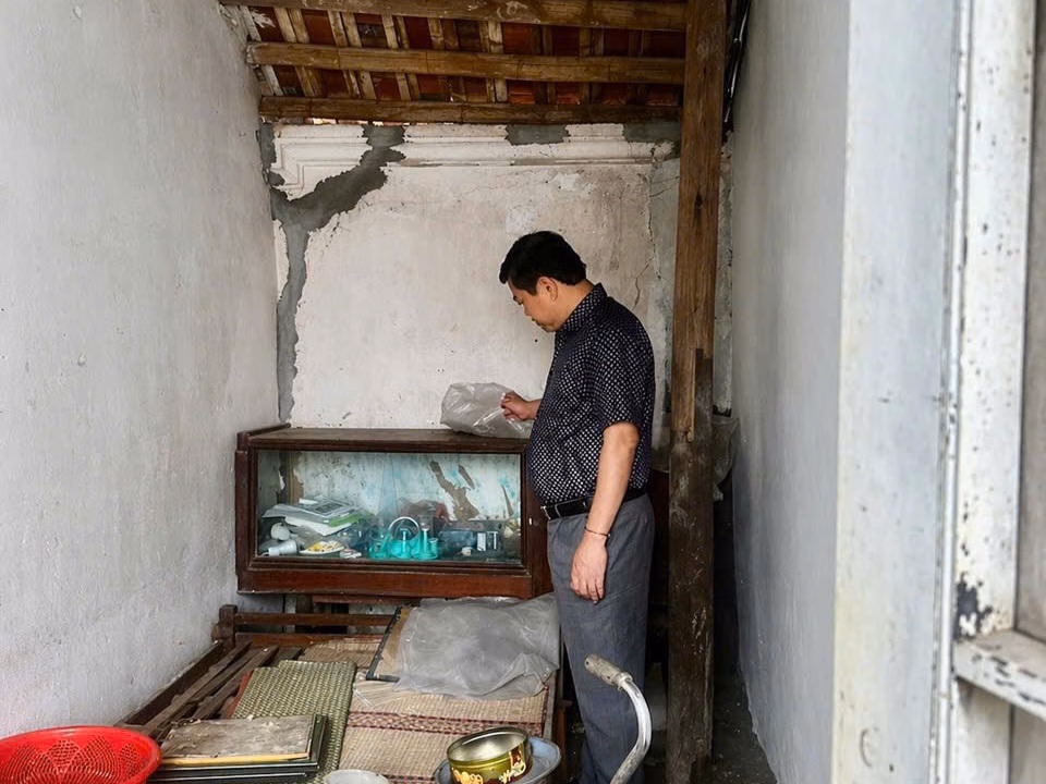 Cũng trong hoàn cảnh tương tự, gia đình ông Trần Quốc Cường (xóm 8, Lưu Phương) nhiều năm sống trong căn nhà xây từ năm 2005 đã hư hỏng nặng. Là hộ cận nghèo, vợ ông bị liệt nửa người, mọi gánh nặng đổ dồn lên vai người chồng. Mái nhà cũ kỹ, tường nứt, có nguy cơ sập đổ bất cứ lúc nào, nhưng việc sửa chữa vẫn là điều ngoài khả năng.