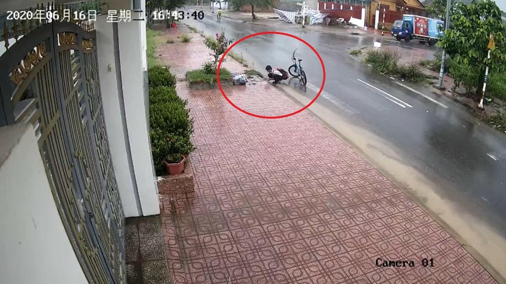 Chắc chắn có rất nhiều người phải xem đi xem lại clip được đăng tải để cùng chung nhận xét rằng cậu bé 12 tuổi, lưng đeo cặp sách, chống xe đạp, cúi nhặt rác ở miệng cống trong cơn mưa chiều tháng 6 của miền Đông Nam Bộ là phản xạ rất tự nhiên. Có ít nhất 10 lần cậu bé chống xe đạp ở các miệng cống trên đường từ trường về nhà để nhặt rác. Hình ảnh, việc làm của cậu bé nằm gọn trong tầm quan sát của camera gắn trước cửa các nhà dân.