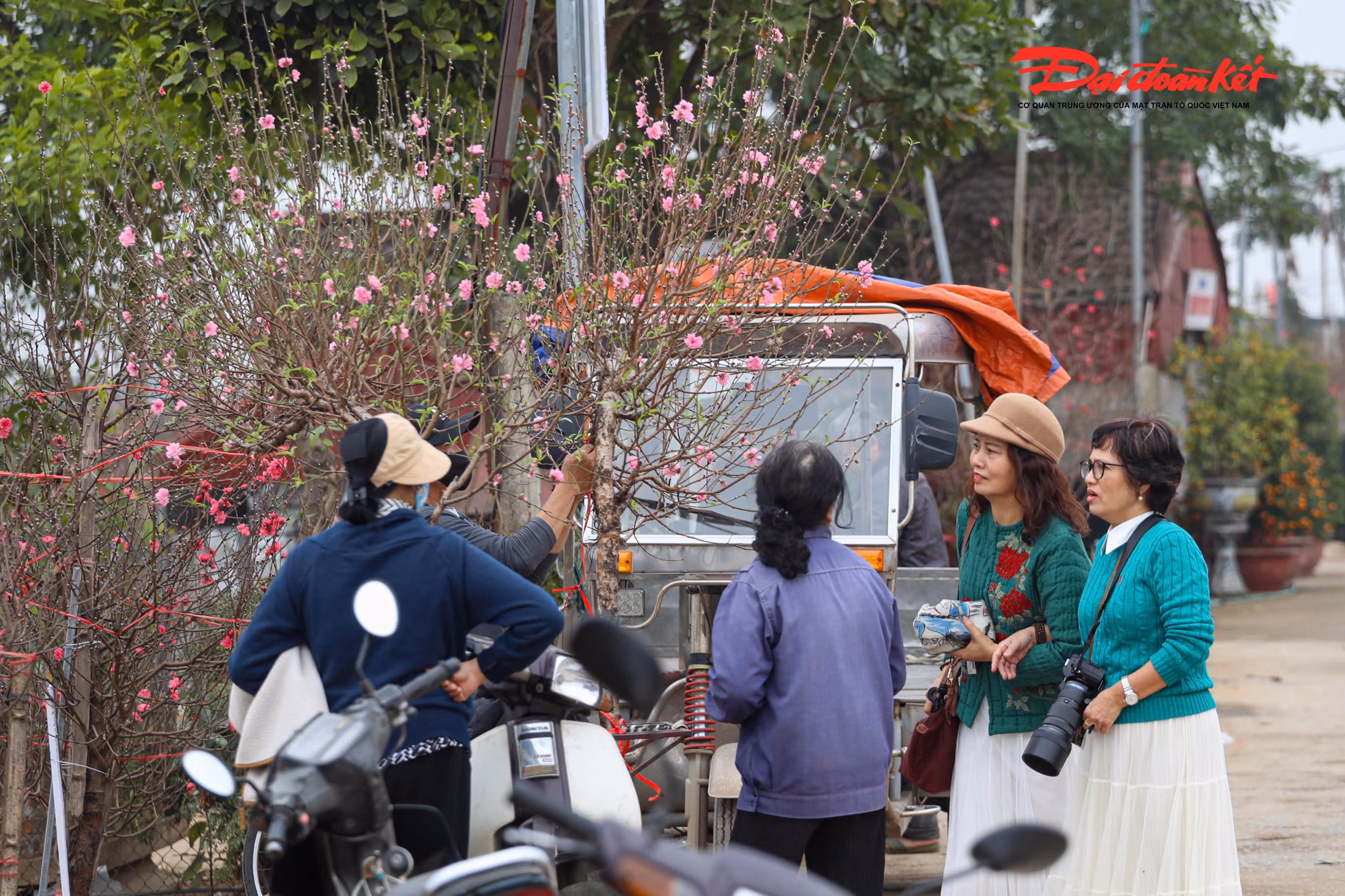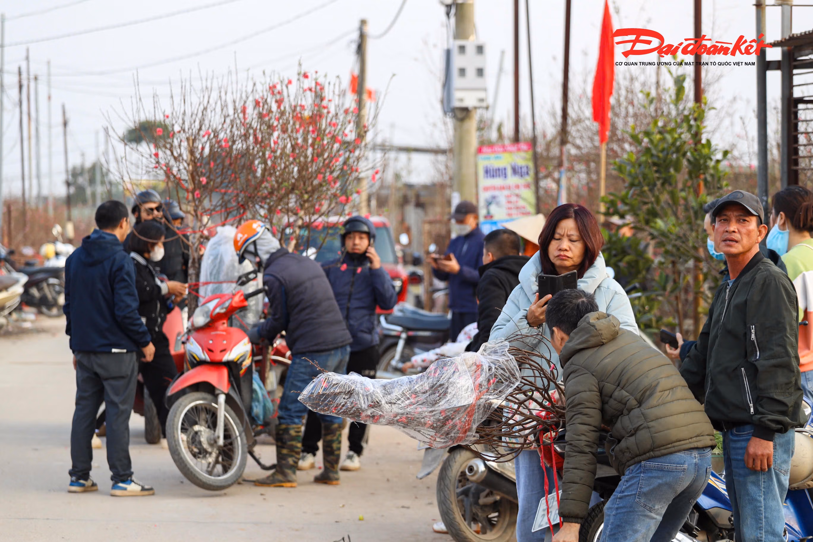 Những ngày cận Tết, từng đoàn xe của khách hàng nối đuôi nhau ra vào làng đào Nhật Tân, tạo nên khung cảnh nhộn nhịp.