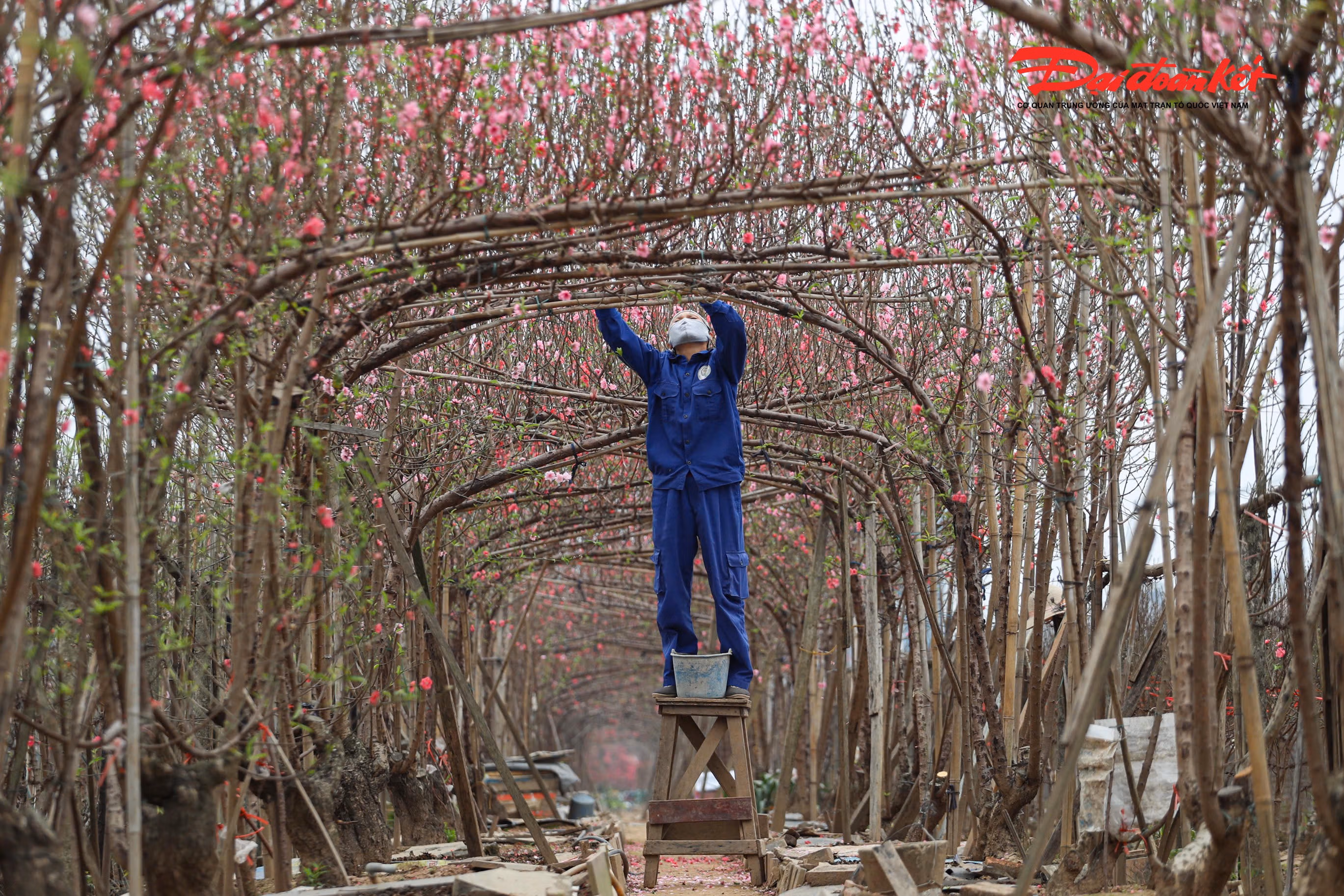 Những ngày giáp Tết Bính Ngọ 2026, làng đào Nhật Tân (phường Hồng Hà, Hà Nội) bước vào thời điểm sôi động nhất trong năm. Dọc các lối nhỏ ven sông Hồng, không khí xuân tràn ngập khi từng vườn đào khoe sắc thắm, người trồng tất bật chăm cây, thương lái tấp nập ra vào chọn hàng phục vụ thị trường Tết.
