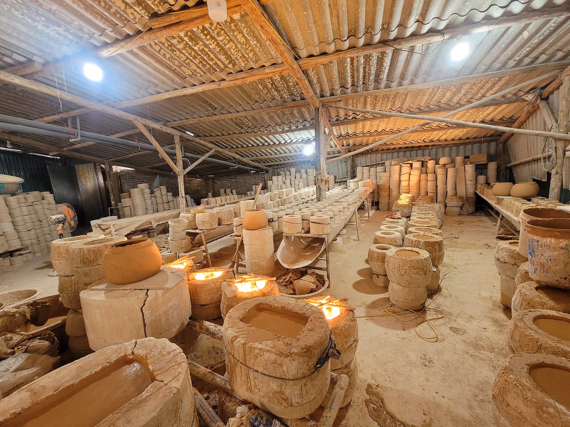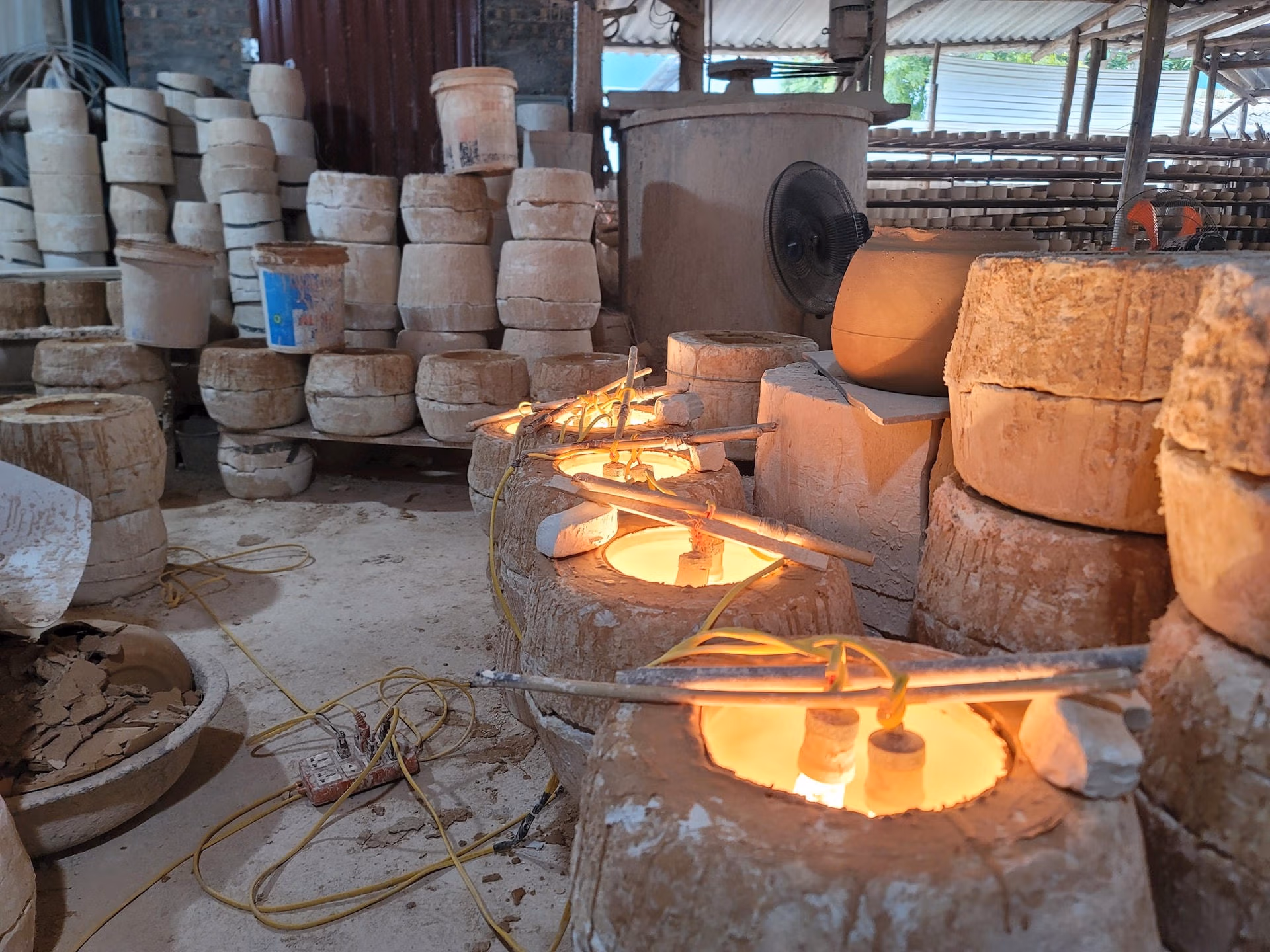 Làng gốm sứ Bát Tràng tất bật những ngày trước tết Chủ Nhật 12/01/2025 07:01 (GMT+7) Những ngày trước Tết Nguyên đán, làng gốm sứ Bát Tràng (Gia Lâm, Hà Nội) tập trung nhân công, tất bật lao động sản xuất hàng hoá phục vụ Tết. Làng gốm sứ Bát Tràng tất bật sản xuất hàng phục vụ Tết.Làng gốm sứ Bát Tràng nằm tại thôn Giang Cao và thôn Bát Tràng, xã Bát Tràng (huyện Gia Lâm, Hà Nội) là làng gốm lớn và nổi tiếng bậc nhất Việt Nam.Mỗi dịp cuối năm, làng nghề lại tất bật để chuẩn bị cho vụ Tết.Nối nghiệp làm gốm của gia đình được 7, 8 năm nay, anh Hiếu (37 tuổi, xưởng sản xuất gốm Hiếu Dung) cho biết, trước Tết Nguyên đán khoảng 2 tháng, các lò gốm trong làng Bát Tràng bắt đầu tập trung nguyên vật liệu và nhân lực để sản xuất hàng Tết. Theo anh Hiếu, những nguyên vật liệu này được các đơn vị có cơ sở tại làng khai thác và cung cấp luôn. "Năm nay kinh tế khó khăn kéo theo lượng hàng tiêu thụ giảm, hàng tồn kho nhiều", anh Hiếu chia sẻ.Cũng theo anh Hiếu, quy trình tạo ra 1 sản phẩm gốm Bát Tràng bắt đầu từ việc khuấy hồ, cho hồ vào khuôn tạo hình sản phẩm, sau đó tiện hàng, phơi khô, lau sạch, tráng men, rồi cho vào lò nung đến 1.200 độ C, sau đó ra lò, đóng gói giao cho khách hàng.Một người thợ đang thực hiện công đoạn tráng men cho sản phẩm gốm.Các sản phẩm gốm của làng Bát Tràng đa dạng và nhiều mẫu mã, từ đồ gia dụng, đồ chơi đến cả các loại gốm trang trí và đồ thờ...Chị Đào (quê ở Hưng Yên) đang lấy hàng từ khuôn ra. Mới 36 tuổi nhưng chị đã có thâm niên làm gốm 20 năm và từng làm cho nhiều xưởng tại Bát Tràng. Phụ trách khâu sản xuất hàng thô cho xưởng gốm Hiếu Dung, chị Đào cho biết, quy trình sản xuất hàng thô bắt đầu bằng việc đổ hồ vào khuôn, đợi khoảng hơn một tiếng thì rót hồ ra, sau đó sấy khô rồi lấy hàng ra.Công đoạn sấy khô trong sản xuất hàng thô gốm Bát Tràng.Anh Cường, chủ xưởng gốm Cường Thơm, đang sắp hàng chuẩn bị vào nung.Vụ Tết, xưởng Cường Thơm chủ yếu tập trung sản xuất ấm sắc thuốc, pha chè, bình hoa, lọ hoa,... So với các năm trước, năm nay theo anh Cường, hàng hóa tiêu thụ chậm hơn.Từng khâu trong quá trình tạo ra sản phẩm đều được những người thợ gốm tỉ mỉ, chau chuốt với mong muốn đem đến cho khách hàng những mặt hàng vừa bền, vừa đẹp để đón Tết. Quốc Thanh