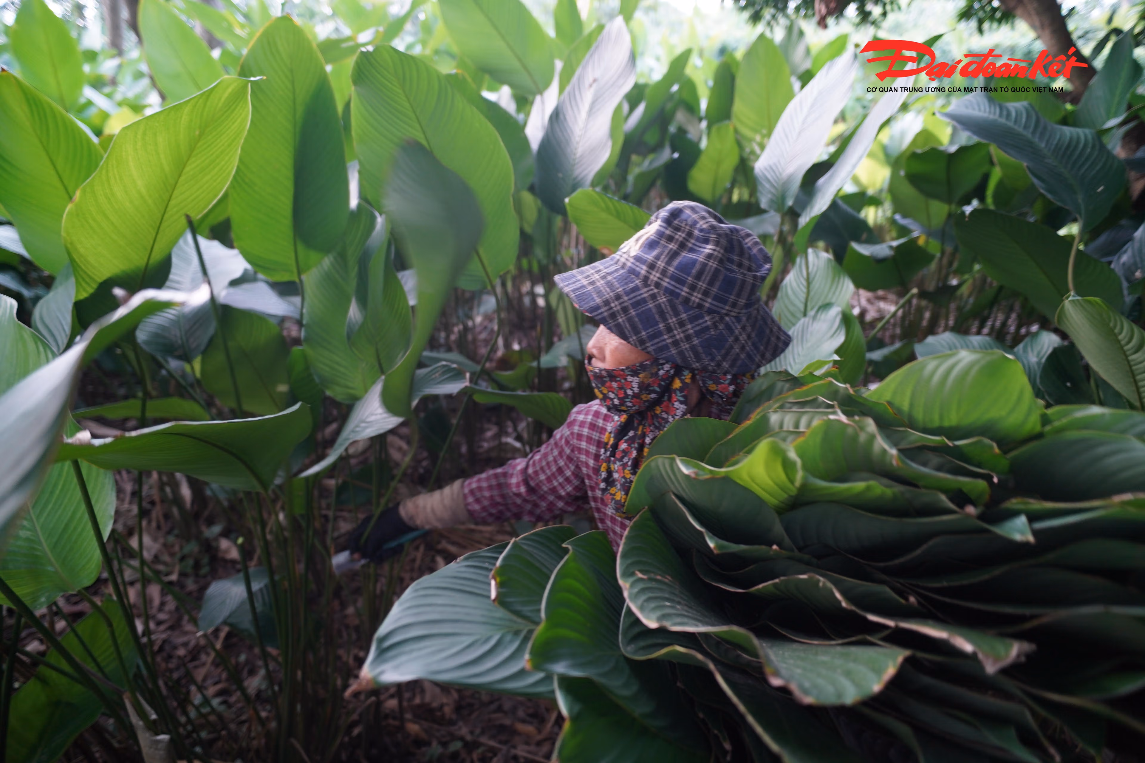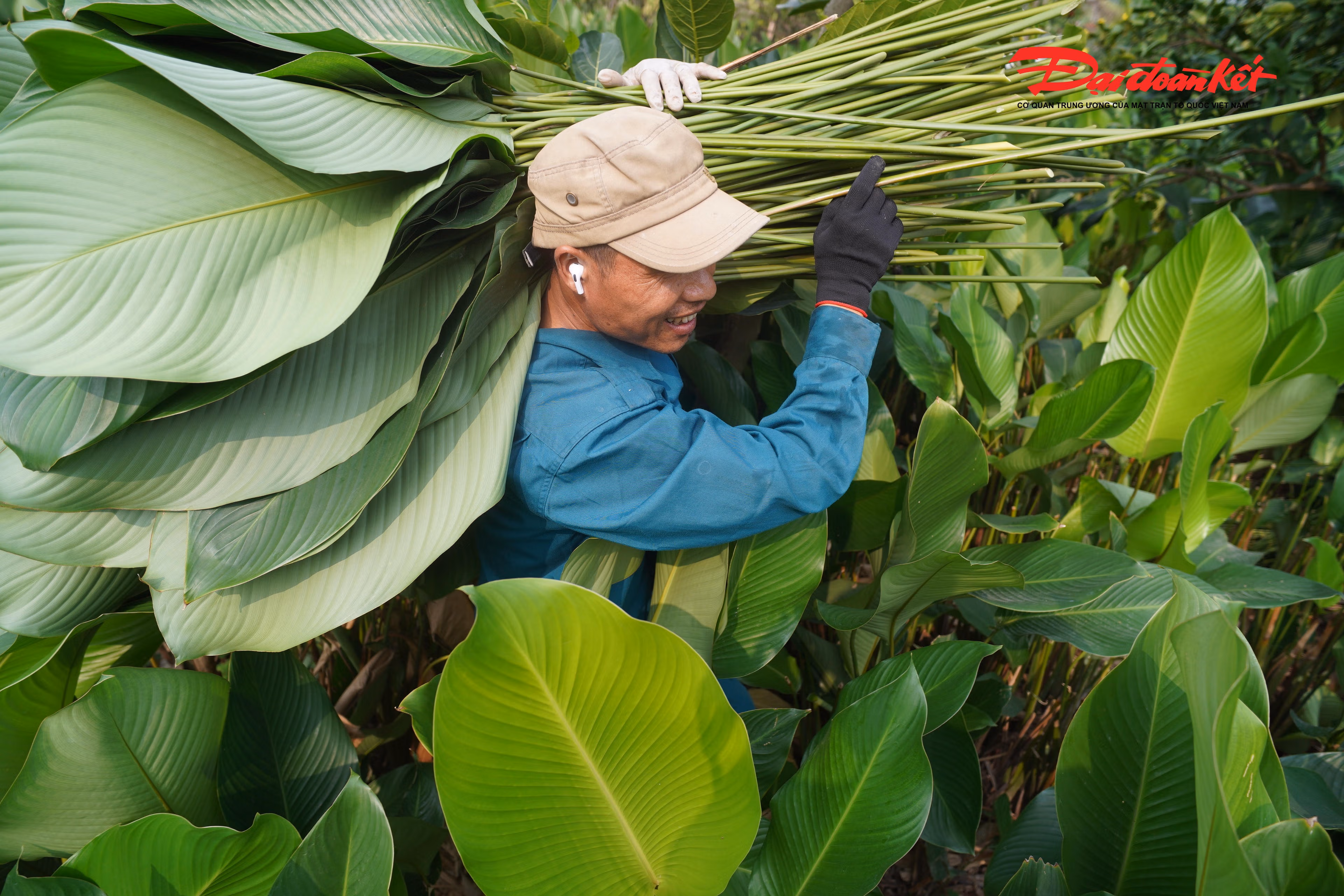 Trước lượng đơn hàng tăng cao vào dịp cuối năm, nhiều gia đình phải huy động cả người già lẫn trẻ nhỏ cùng tham gia thu hoạch, bảo đảm nguồn cung lá dong phục vụ thị trường Tết trên khắp cả nước.