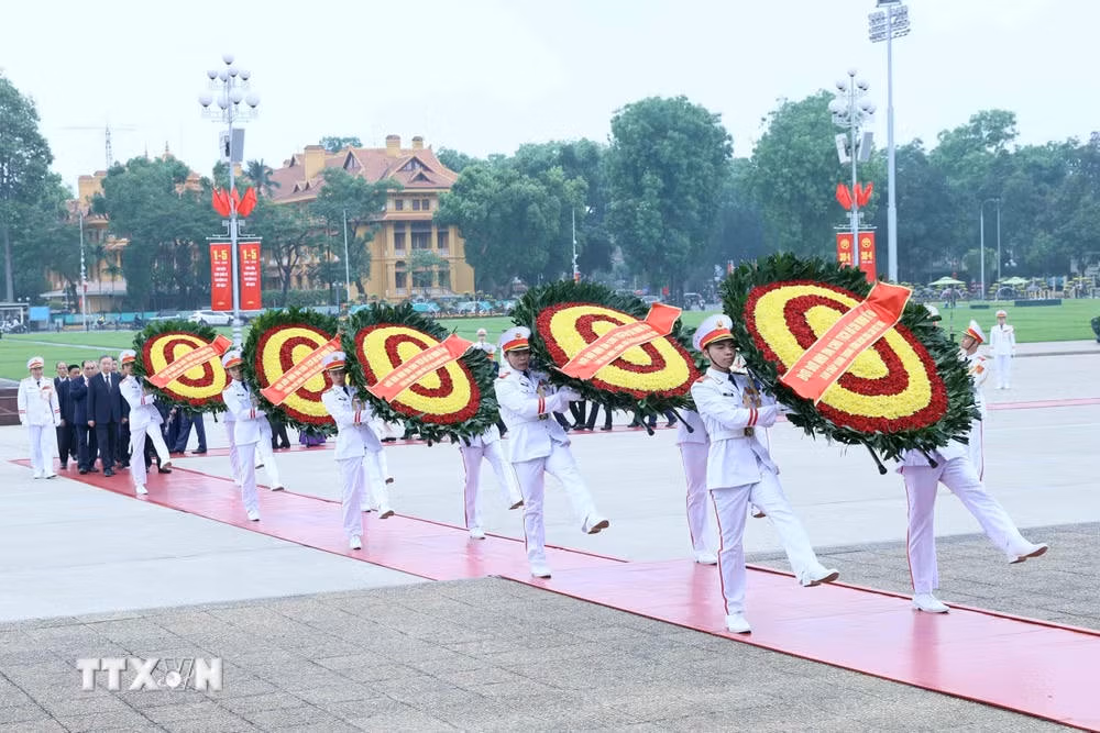 Sau đó, các Đoàn đại biểu Quân ủy Trung ương - Bộ Quốc phòng; Đảng ủy Công an Trung ương - Bộ Công an; Thành ủy, Hội đồng Nhân dân, Ủy ban Nhân dân thành phố Hà Nội... đã đến đặt vòng hoa, vào Lăng viếng Chủ tịch Hồ Chí Minh.