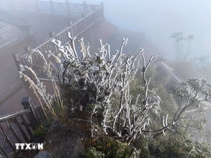 Theo thông tin từ đại diện Ban Quản lý Khu du lịch Sun World Fansipan Legend Sa Pa, từ sáng 12/1, nhiệt độ tại đỉnh Fansipan xuống âm 6 độ C khiến mọi vật bị đóng băng trắng xóa. Đây là lần thứ hai đỉnh Fansipan cao 3.143m ở thị xã Sa Pa xuất hiện băng giá trong mùa đông 2024-2025.