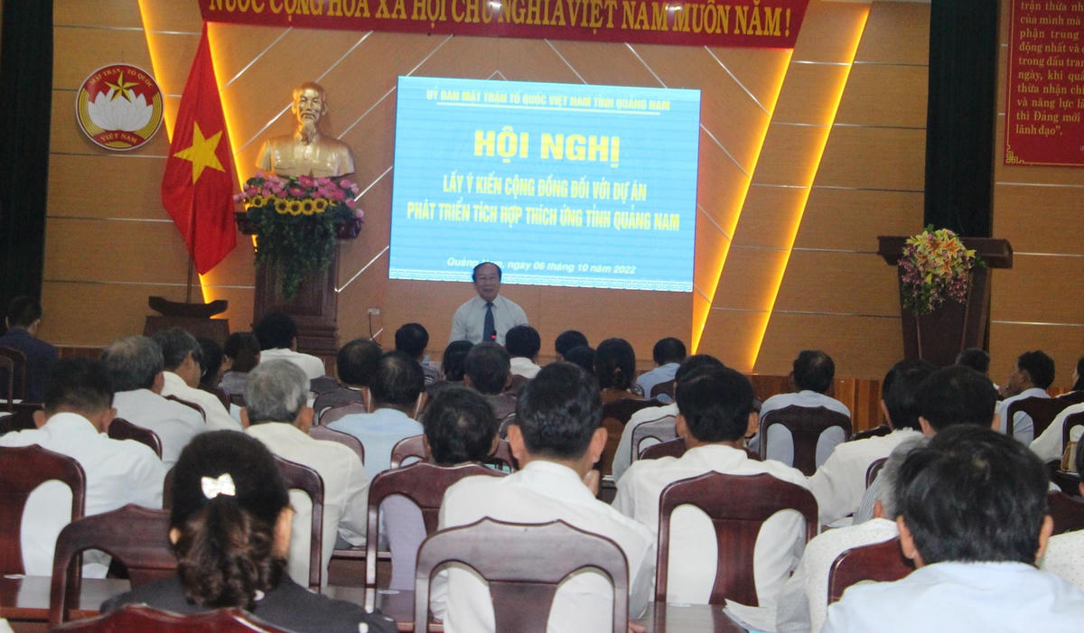 Sáng 6/10, Ủy ban MTTQ Việt Nam tỉnh Quảng Nam tổ chức Hội nghị lấy ý kiến cộng đồng dân cư đối với Dự án Phát triển tích hợp thích ứng (THTƯ) tỉnh Quảng Nam. Ông Võ Xuân Ca, Chủ tịch Ủy ban MTTQ Việt Nam tỉnh Quảng Nam chủ trì hội nghị.