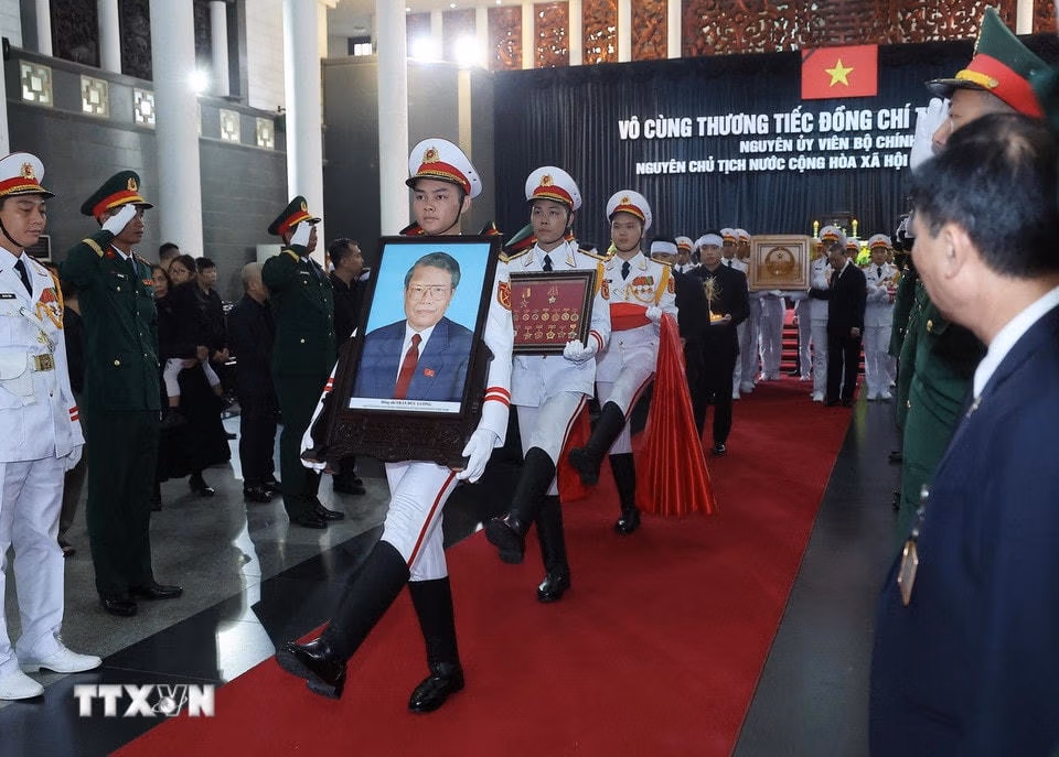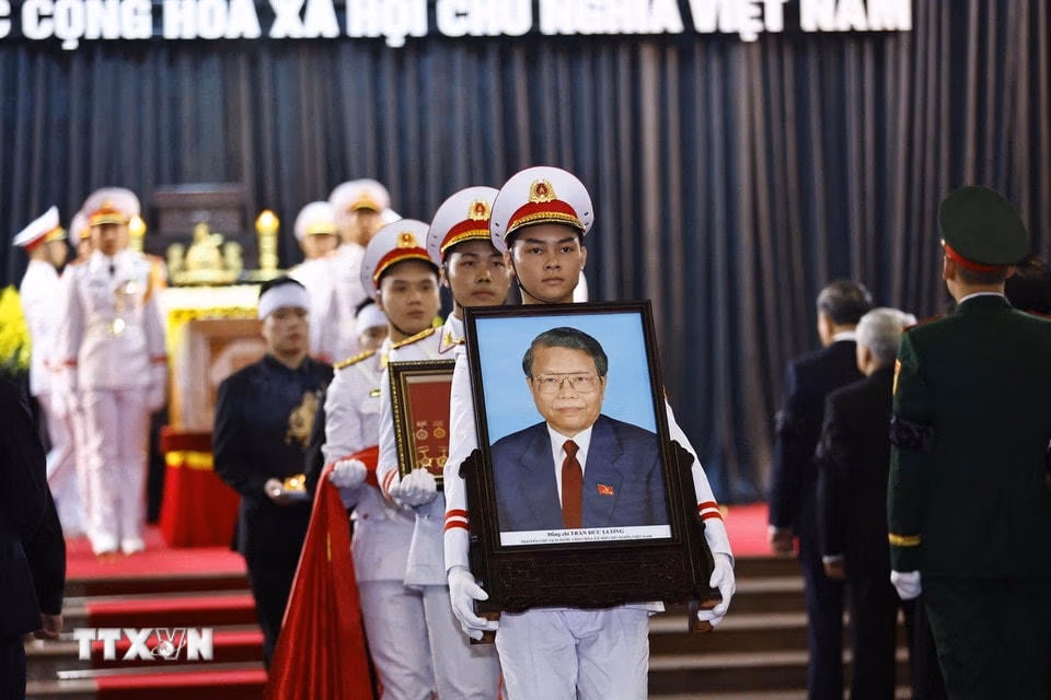 Lễ đưa tang nguyên Chủ tịch nước Trần Đức Lương tại Hà Nội Chủ Nhật 25/05/2025 09:06 (GMT+7) Sáng 25/5, Lễ truy điệu và đưa tang nguyên Chủ tịch nước Trần Đức Lương được tổ chức trọng thể tại Nhà tang lễ Quốc gia, số 5 Trần Thánh Tông, thành phố Hà Nội. Nghi thức rước linh cữu nguyên Chủ tịch nước Trần Đức Lương. (Ảnh: TTXVN)Nghi thức rước ảnh nguyên Chủ tịch nước Trần Đức Lương, bắt đầu lễ di quan. (Ảnh: TTXVN)Nghi thức rước ảnh nguyên Chủ tịch nước Trần Đức Lương, bắt đầu lễ di quan. (Ảnh: TTXVN)Nghi thức rước ảnh nguyên Chủ tịch nước Trần Đức Lương, bắt đầu lễ di quan. (Ảnh: TTXVN)Nghi thức rước ảnh nguyên Chủ tịch nước Trần Đức Lương, bắt đầu lễ di quan. (Ảnh: TTXVN)Các đồng chí lãnh đạo Đảng, Nhà nước chuyển linh cữu nguyên Chủ tịch nước Trần Đức Lương. (Ảnh: TTXVN)Các đồng chí lãnh đạo Đảng, Nhà nước chuyển linh cữu nguyên Chủ tịch nước Trần Đức Lương. (Ảnh: TTXVN)Các đồng chí lãnh đạo Đảng, Nhà nước chuyển linh cữu nguyên Chủ tịch nước Trần Đức Lương. (Ảnh: TTXVN)Các đồng chí lãnh đạo Đảng, Nhà nước chuyển linh cữu nguyên Chủ tịch nước Trần Đức Lương. (Ảnh: TTXVN)Các đồng chí lãnh đạo Đảng, Nhà nước chuyển linh cữu nguyên Chủ tịch nước Trần Đức Lương. (Ảnh: TTXVN)Tổng Bí thư Tô Lâm, Chủ tịch nước Lương Cường chuyển linh cữu nguyên Chủ tịch nước Trần Đức Lương. (Ảnh: TTXVN)Nghi thức rước ảnh và chuyển linh cữu nguyên Chủ tịch nước Trần Đức Lương. (Ảnh: TTXVN)Các đồng chí lãnh đạo Đảng, Nhà nước chuyển linh cữu nguyên Chủ tịch nước Trần Đức Lương. (Ảnh: TTXVN)Đội nghi lễ sẵn sàng đi đón linh cữu nguyên Chủ tịch nước Trần Đức Lương. (Ảnh: Phạm Cường/TTXVN)Lễ đưa tang nguyên Chủ tịch nước Trần Đức Lương tại Nhà tang lễ Quốc gia, số 5 Trần Thánh Tông, thành phố Hà Nội. (Ảnh: TTXVN)Nghi thức rước ảnh và chuyển linh cữu nguyên Chủ tịch nước Trần Đức Lương. (Ảnh: TTXVN)Lễ đưa tang nguyên Chủ tịch nước Trần Đức Lương tại Nhà tang lễ Quốc gia, số 5 Trần Thánh Tông, thành phố Hà Nội. (Ảnh: TTXVN)Đoàn xe chuyển linh cữu nguyên Chủ tịch nước Trần Đức Lương đi qua Quảng trường Cách mạng tháng Tám. (Ảnh: Minh Quyết/TTXVN)Đoàn xe đưa linh cữu nguyên Chủ tịch nước Trần Đức Lương trên đường phố Hà Nội. (Ảnh: Tuấn Anh/TTXVN) Theo TTXVN