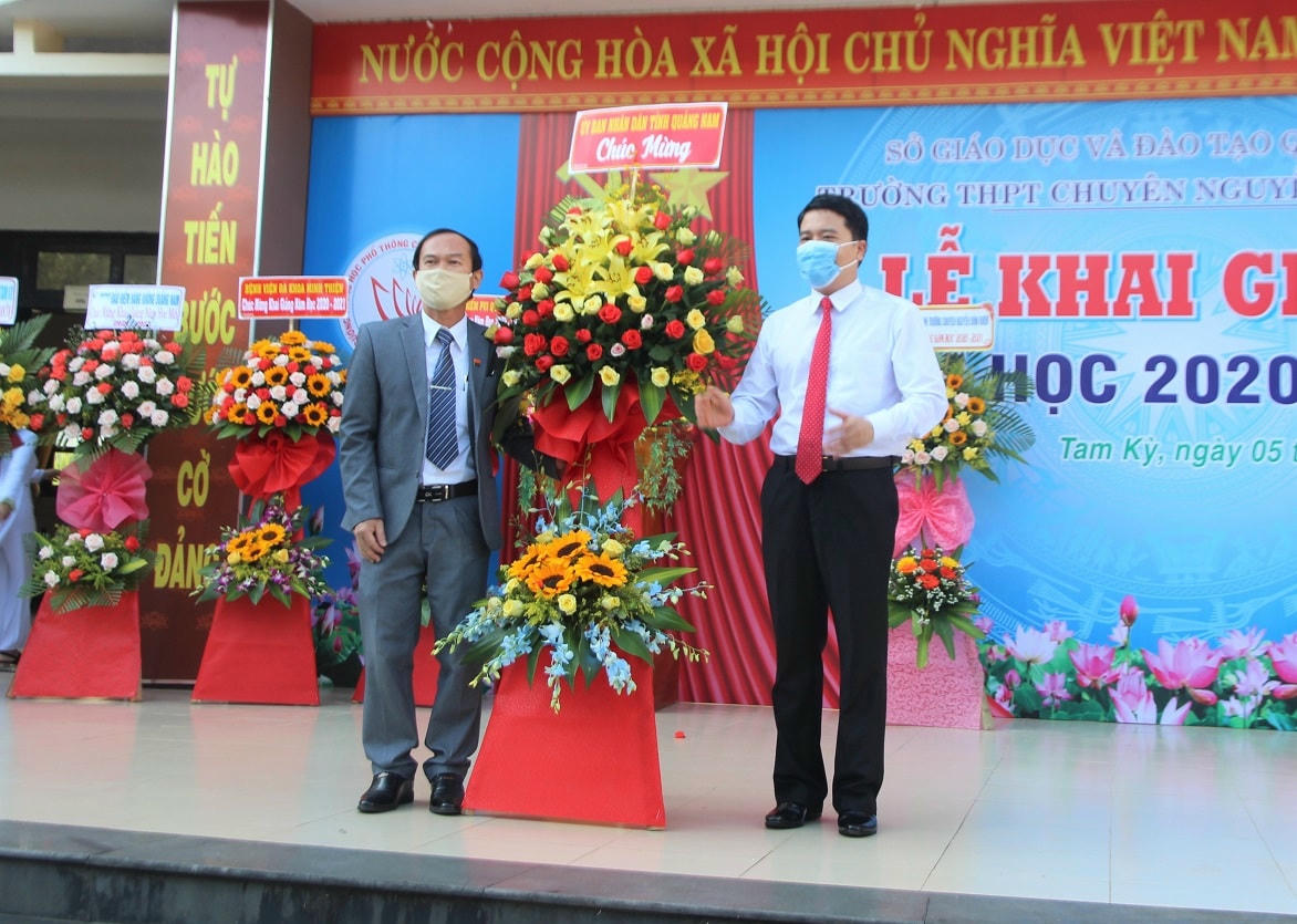Em Nguyễn Văn Cường, học sinh Trường chuyên Nguyễn Bỉnh Khiêm, TP Tam Kỳ cho biết: “Dù dịch Covid-19 đang diễn ra trên địa bàn tỉnh Quảng Nam nhưng sáng nay dự Lễ khai giảng em và các bạn không hề lo sợ. Vì nhà trường đã quá chu đáo cho việc phòng, chống dịch, như bố trí các điểm rửa tay sát khuẩn, đo thân nhiệt, còn các bạn học sinh cũng rất ý thực trong việc này”.