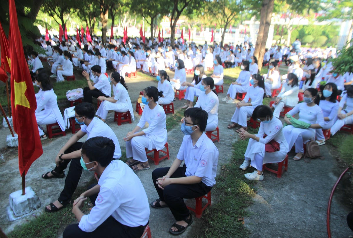 “Lễ khai giảng chỉ có các em đầu cấp lớp 10 và đại diện các lớp, số lượng không nhiều và chúng tôi tổ chức lễ cũng nhanh gọn. Phải thực hiện nhiệm vụ kép là vừa đảm bảo việc dạy và học, vừa đảm bảo công tác phòng, chống dịch”, thầy Thanh nhấn mạnh.