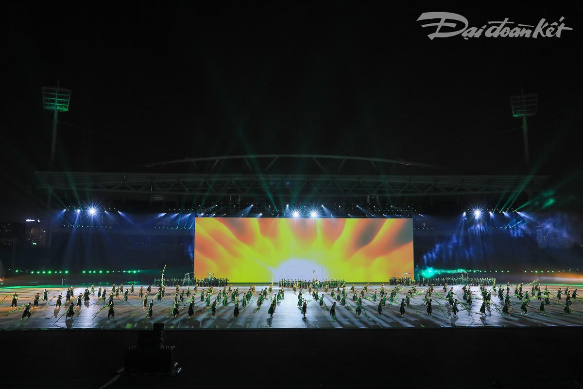 Hàng loạt hình thức công nghệ hiện đại sẽ được sử dụng trong lễ khai mạc SEA Games 31 diễn ra vào tối mai (12/5). Mở đầu là nghi thức thượng cờ Việt Nam.Lễ khai mạc SEA Games 31 kết hợp đan xen giữa phần lễ và phần hội, sau nghi lễ thượng cờ là màn biểu diễn nghệ thuật, lễ diễu hành đoàn thể thao các nước, thượng cờ SEA Games và Olympic, rước đuốc... Hình ảnh cây tre, búp sen, nón lá... xuất hiện trong các chương trình nghệ thuật, thể hiện sức sống mãnh liệt, tinh thần đoàn kết của người Việt Nam.SEA Games 31 diễn ra từ ngày 12/5 đến 23/5 tại Hà Nội và 11 tỉnh, thành lân cận. Đại hội sẽ tổ chức 40 môn thi, 526 nội dung với sự tham dự của 10.000 VĐV, HLV của 11 đoàn thể thao ở Đông Nam Á.Là đơn vị đăng cai tổ chức Sea Game 31, những ngày này, Sở Văn hóa và Thể thao Hà Nội, Trưởng ban tổ chức chương trình gấp rút chuẩn bị cho các tiết mục nghệ thuật.Tâm điểm của lễ khai mạc là chương trình nghệ thuật 3 phần. Trong ảnh là các em học sinh tập luyện cho tiết mục chào đón. Trao đổi với Đại Đoàn Kết Online, NSƯT, Tổng Đạo diễn Trần Ly Ly cho biết tính đến thời điểm hiện tại, mọi công việc cho Lễ Khai mạc SEA Games 31 gần như đã hoàn tất. "Sau buổi tổng duyệt vào tối 10/5, chúng tôi cũng đã ngồi với nhau để căn chỉnh một số tiểu tiết và trao đổi thêm về cơ chế vận hành sao cho trơn tru nhất khi biểu diễn trong Lễ Khai mạc", NSƯT Trần Ly Ly thông tin thêm.