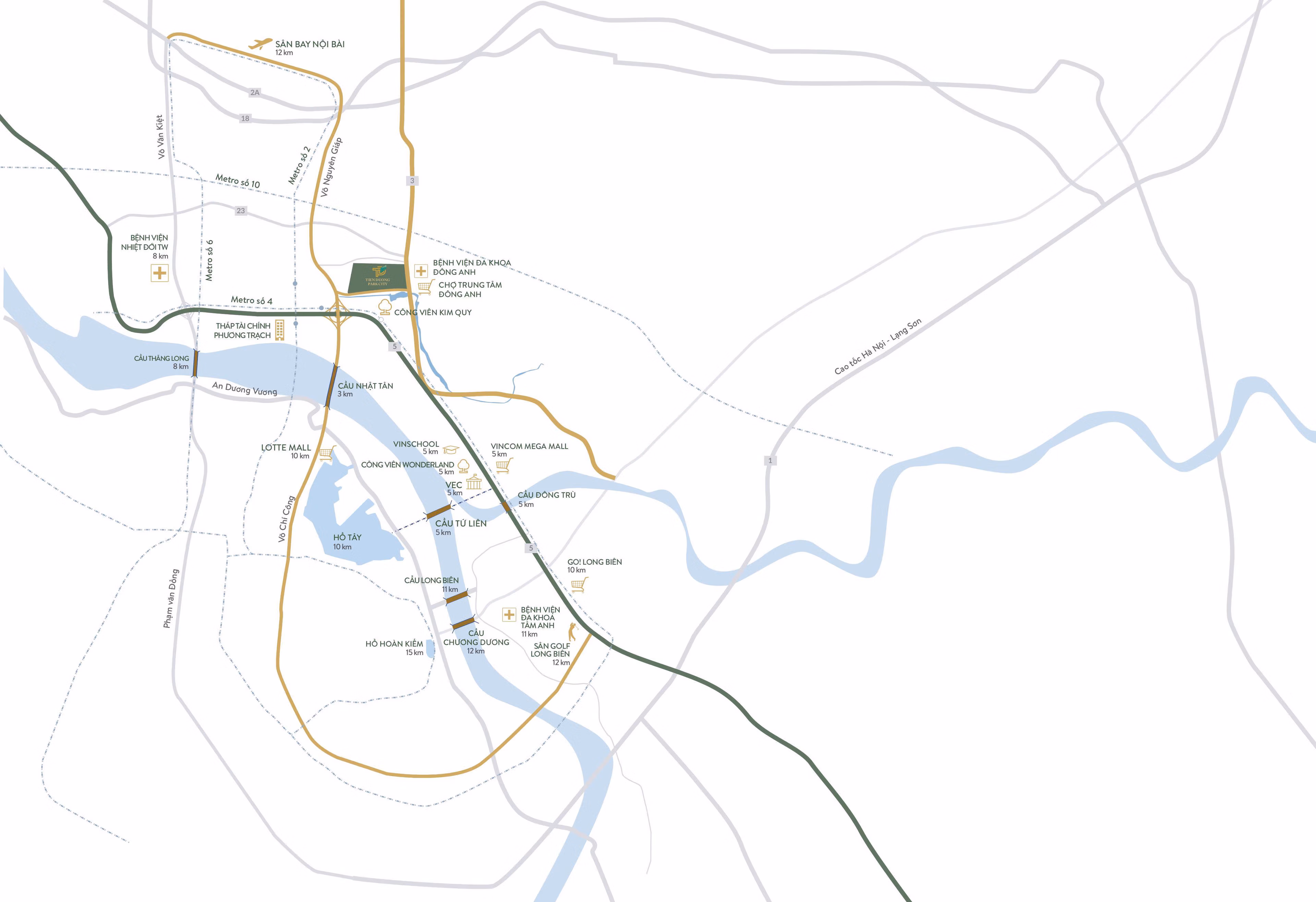 Khu vực xung quanh dự án được đầu tư hạ tầng đồng bộ với hệ thống quốc lộ, đường vành đai, các tuyến metro số 2, 4, 10, bên cạnh mạng lưới trung tâm dịch vụ - giáo dục - y tế như Bệnh viện Đa khoa Đông Anh, hệ thống trường học, trung tâm thương mại và các điểm vui chơi giải trí quy mô vùng.