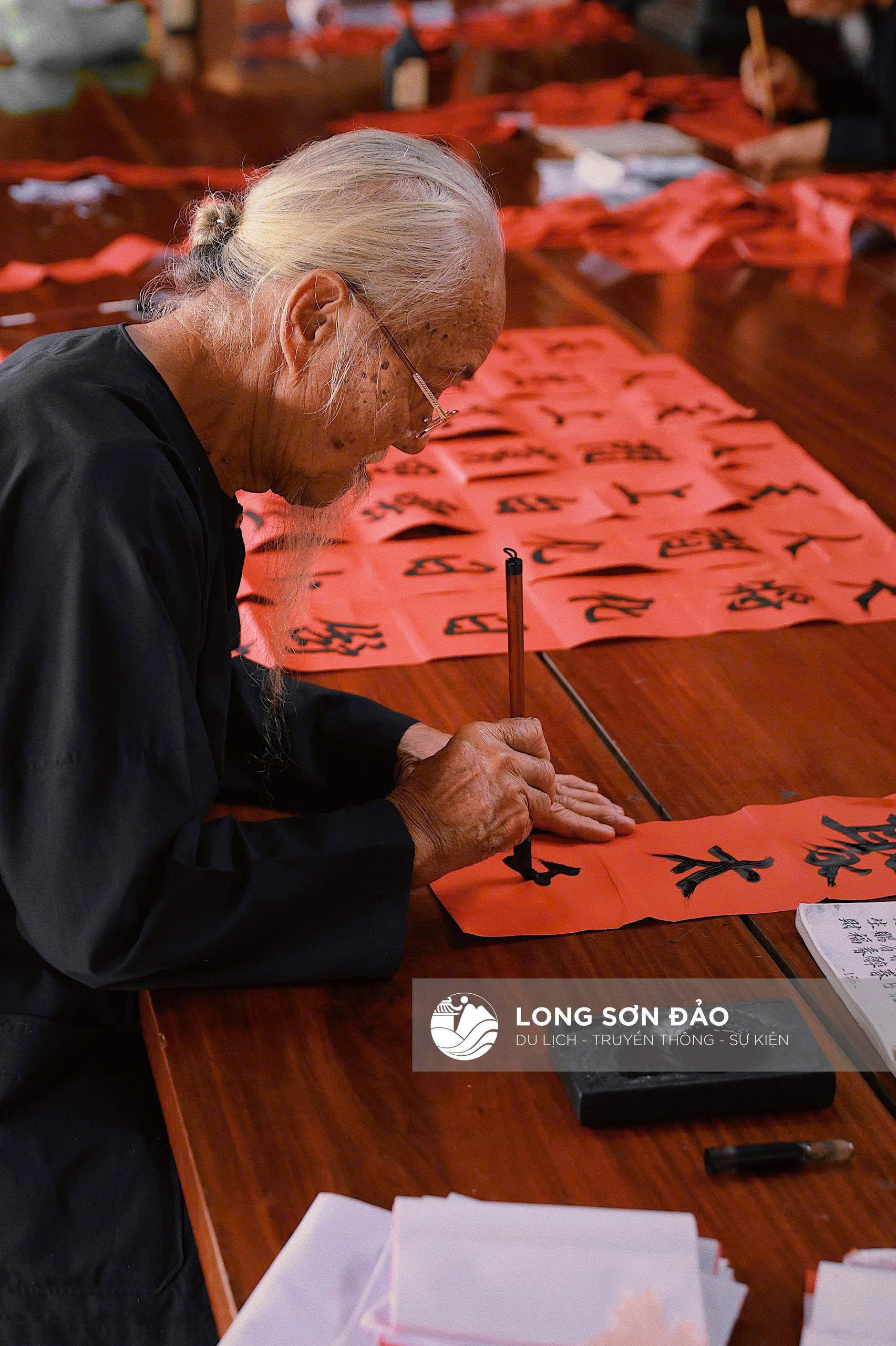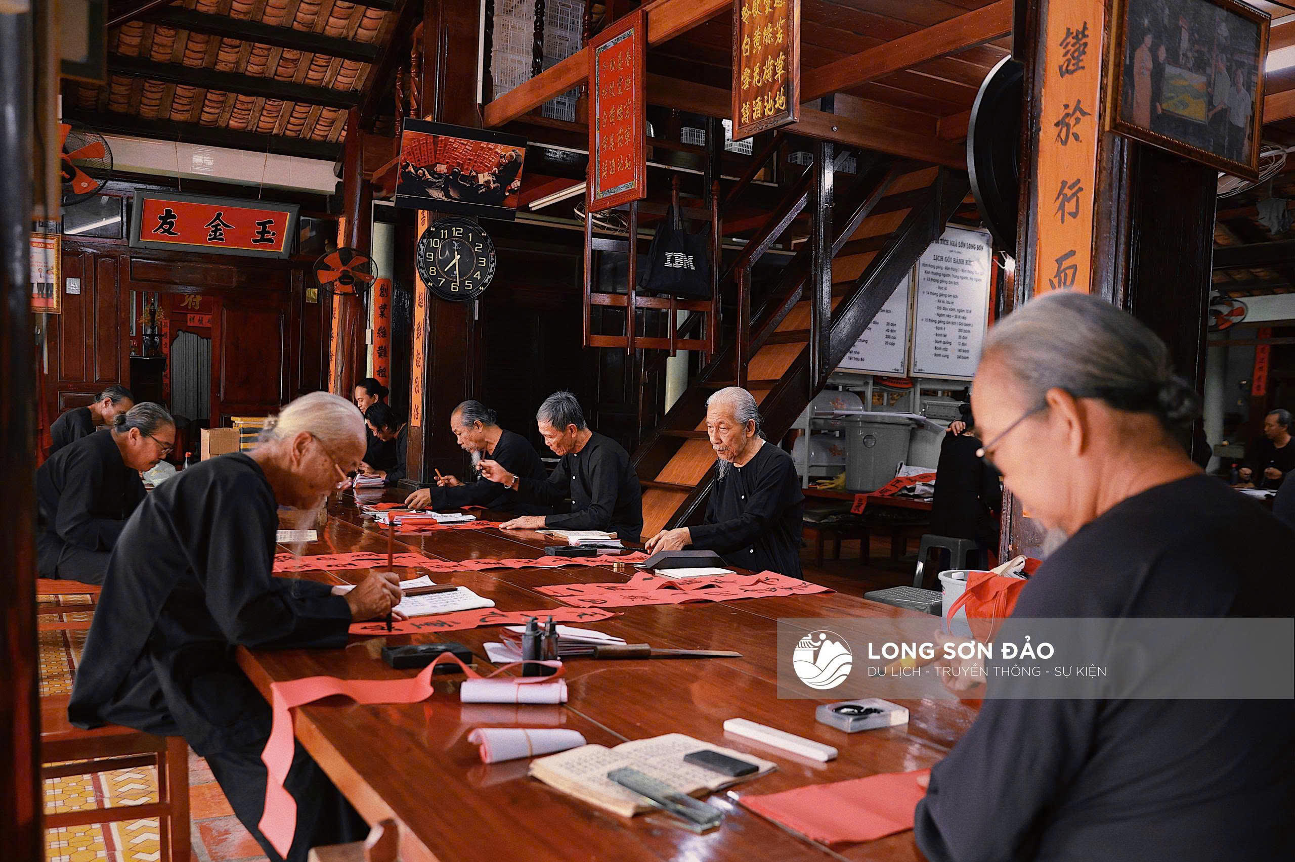 Đặc biệt, hoạt động viết liễn thu hút sự chú ý của du khách. Hình ảnh các “ông đồ” mặc áo bà ba đen, đầu vấn khăn, tỉ mỉ viết từng nét chữ Nôm trên nền giấy đỏ gợi lại không gian văn hóa xưa. Nội dung các câu đối chủ yếu là lời răn dạy về “nhân, lễ, nghĩa, trí, tín”, hướng con người đến lối sống thiện lành.