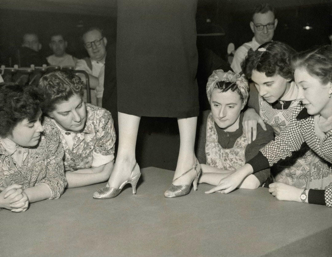 Cho đến những năm 1950, với sự hợp tác của Christian Dior với Roger Vivier, một nhà thiết kế giày người Pháp, đã phát minh ra loại giày gót nhọn. Tiếp đó, ngày càng có nhiều thiết kế giày cao gót có thể được nhìn thấy trong các cửa hàng mua sắm và sự xuất hiện của các minh tinh màn bạc lớn của Hollywood như Marilyn Monroe hay Audrey Hepburn – những người luôn mang những đôi giày cao gót thời thượng cả trong phim lẫn ngoài đời, khiến cho sự xuất hiện của các buổi trình diễn giày cao gót trở nên vô cùng phổ biến. Giày gót nhọn hoàn toàn chiếm lĩnh thị trường thời trang giày dép nữ trong suốt những năm 1960.