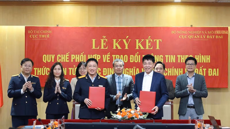 Ngày 7/1, tại Cục Thuế diễn ra lễ ký Quy chế phối hợp về trao đổi thông tin theo hình thức điện tử để xác định nghĩa vụ tài chính về đất đai giữa Cục Thuế và Cục Quản lý đất đai (Bộ Nông nghiệp và Môi trường).