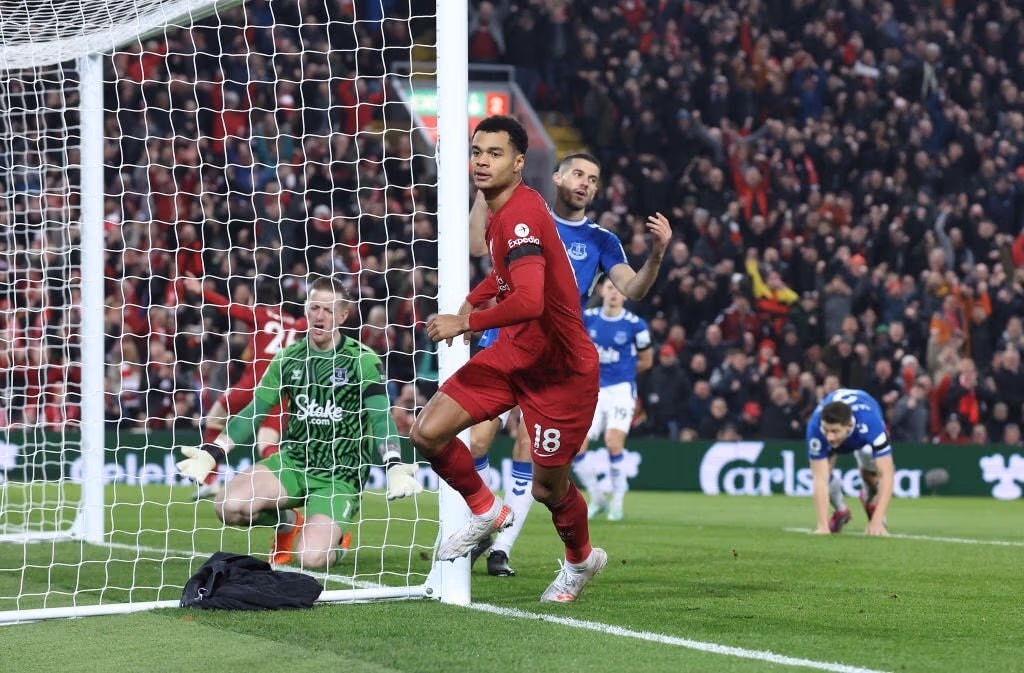 Bước vào hiệp hai được 3 phút, Liverpool nhân đôi cách biệt. Đội chủ nhà có một pha triển khai tấn công nhuần nhuyễn, Alexander-Arnold chuyền bóng loại bỏ toàn bộ hệ thống phòng thủ của Everton, tạo cơ hội cho Gakpo dứt điểm ở gần cột dọc trái ghi bàn cho The Kop.