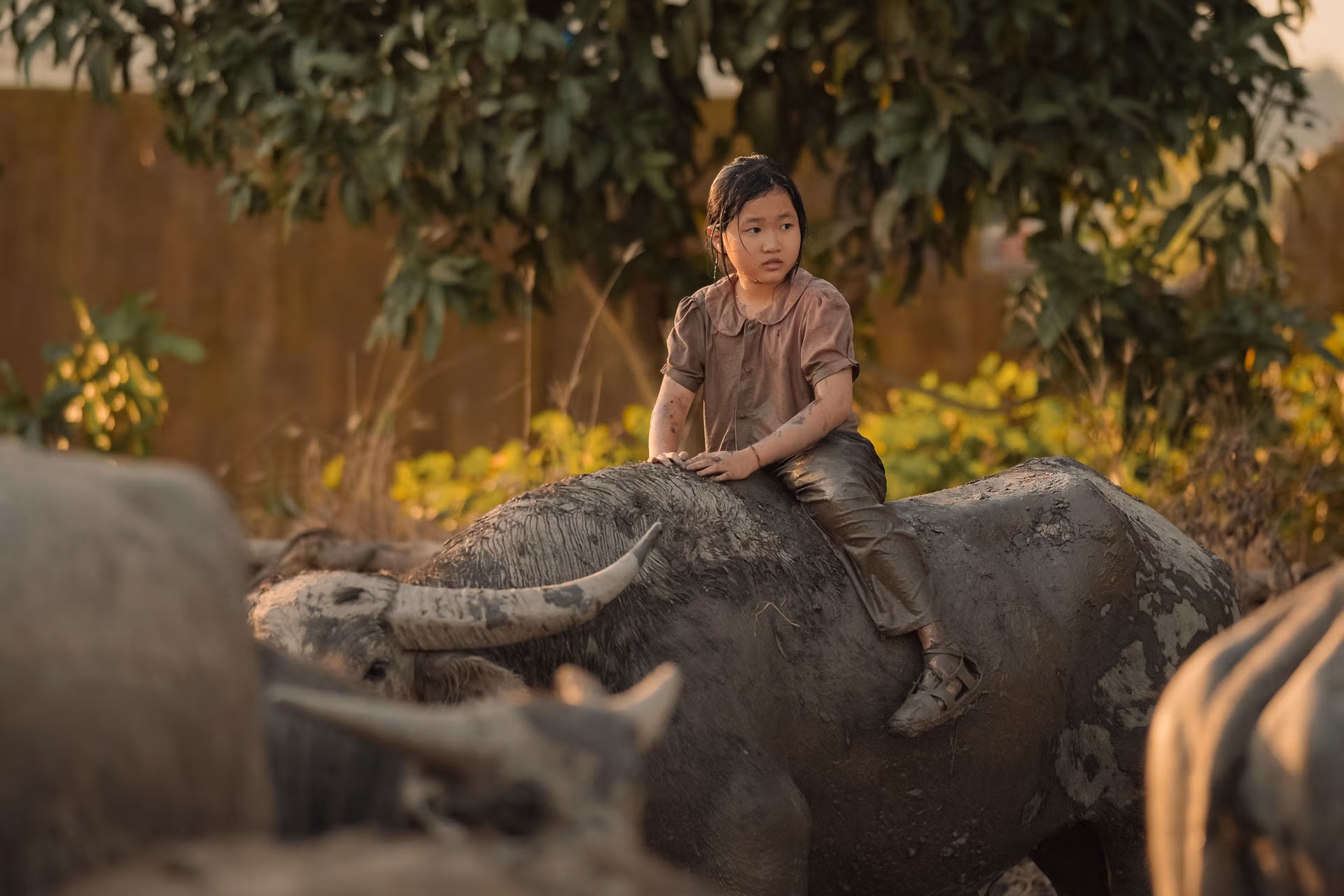 Kỳ Phong mang đúng tinh thần của thằng Cò – lì lợm và can đảm. Em chia sẻ trong quá trình học cưỡi trâu, vì kéo sợi dây dắt trâu mạnh quá làm con trâu bị hoảng, mém hất em xuống dưới bùn.