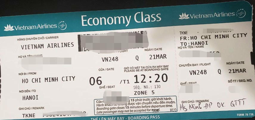 Theo Đ., sau khi chuyển khoản cho đại lý vé thì quay trở lại quầy check-in, Đ. được nhân viên mặc đồng phục hãng Vietnam Airlines hướng dẫn tận tình để lên tàu bay. Chiếc vé máy bay được nhân viên hãng viết ký hiệu với dòng chữ “Ms Minh ĐP OK GTTT”. Sau khi có dòng chữ này trên vé, những người mặc đồng phục an ninh sân bay Tân Sơn Nhất hỗ trợ đưa Đ. lên máy bay mà không cần xuất trình bất kỳ giấy tờ nào.