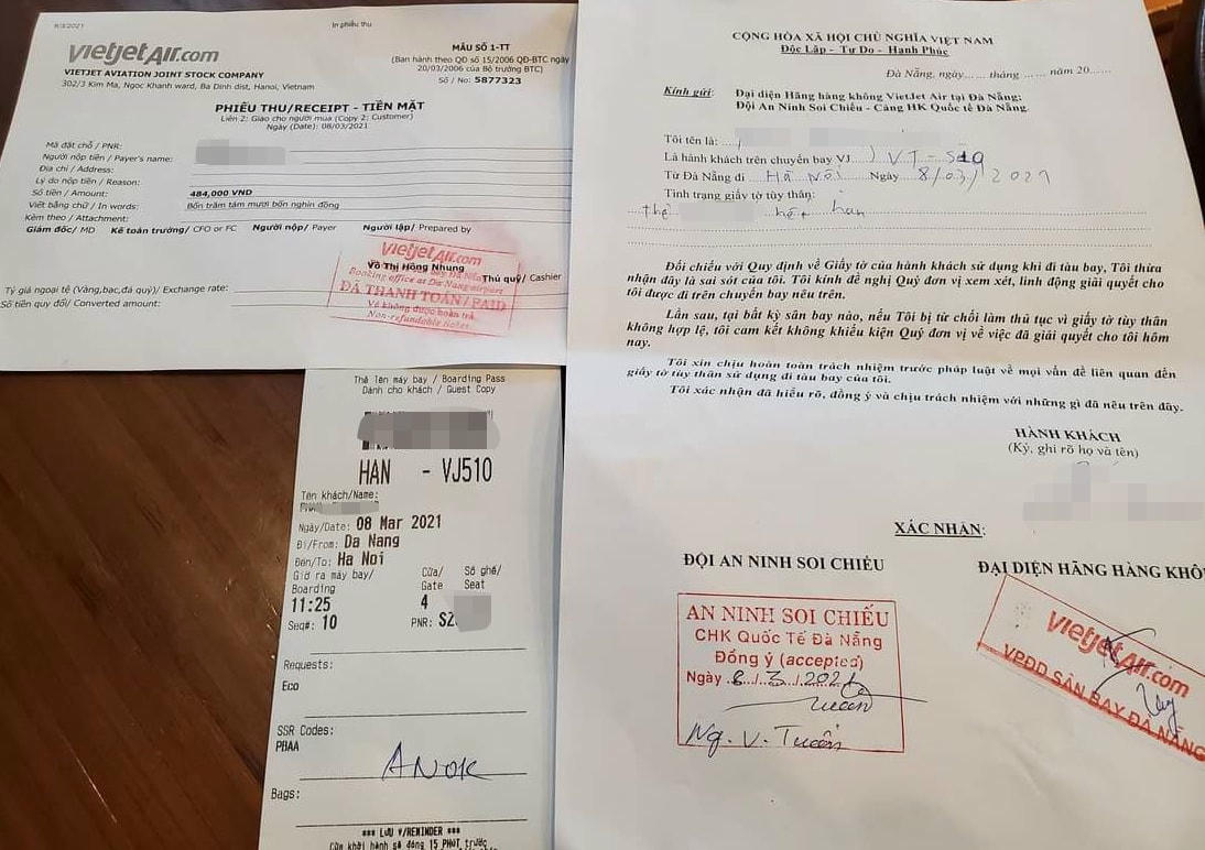 Đặc biệt hơn, với hãng Bamboo Airways, Vietjet Air, nhiều hành khách sau khi chuyển khoản làm dịch vụ bay không giấy tờ thông qua các đại lý đã được cấp các giấy “thông hành” có con dấu mang tên hãng Bamboo Airways, Vietjet Air và tờ giấy có chữ ký của người đại diện Vietjet Air Nội Bài để lên máy bay mà không bị kiểm tra giấy tờ tuỳ thân.