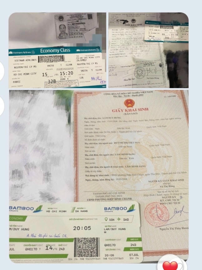 Theo quy định của các hãng hàng không, Đ. phải gọi về nhờ người ở quê ra công an nơi cư trú xin giấy xác nhận nhân thân (ảnh 4 x 6 đóng dấu giáp lai). Sau đó, nhờ người gửi vào thì mới đủ điều kiện lên máy bay. “Nhưng éo le, bản thân tôi là mẹ đơn thân, 1 mình đứng tên 1 sổ hộ khẩu, không có mặt tôi thì xã không cho mẫu xác minh nhân thân. Vì thế tôi phải nhờ đại lý hỗ trợ với chi phí gần 2 triệu đồng để được lên máy bay”, Đ. nói.