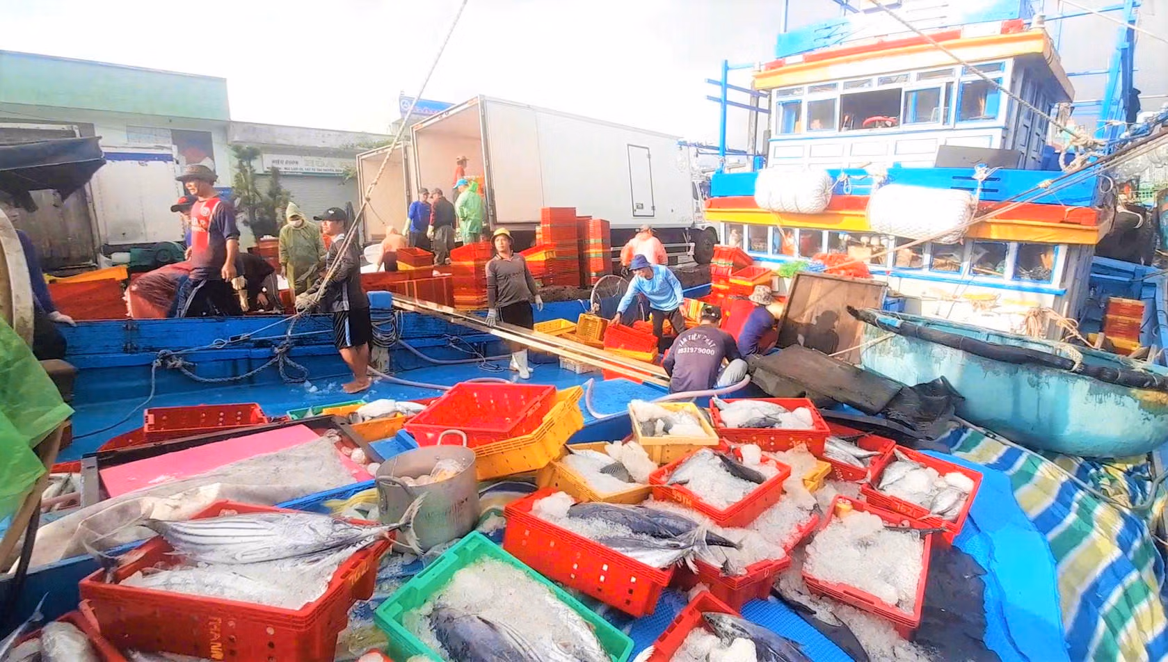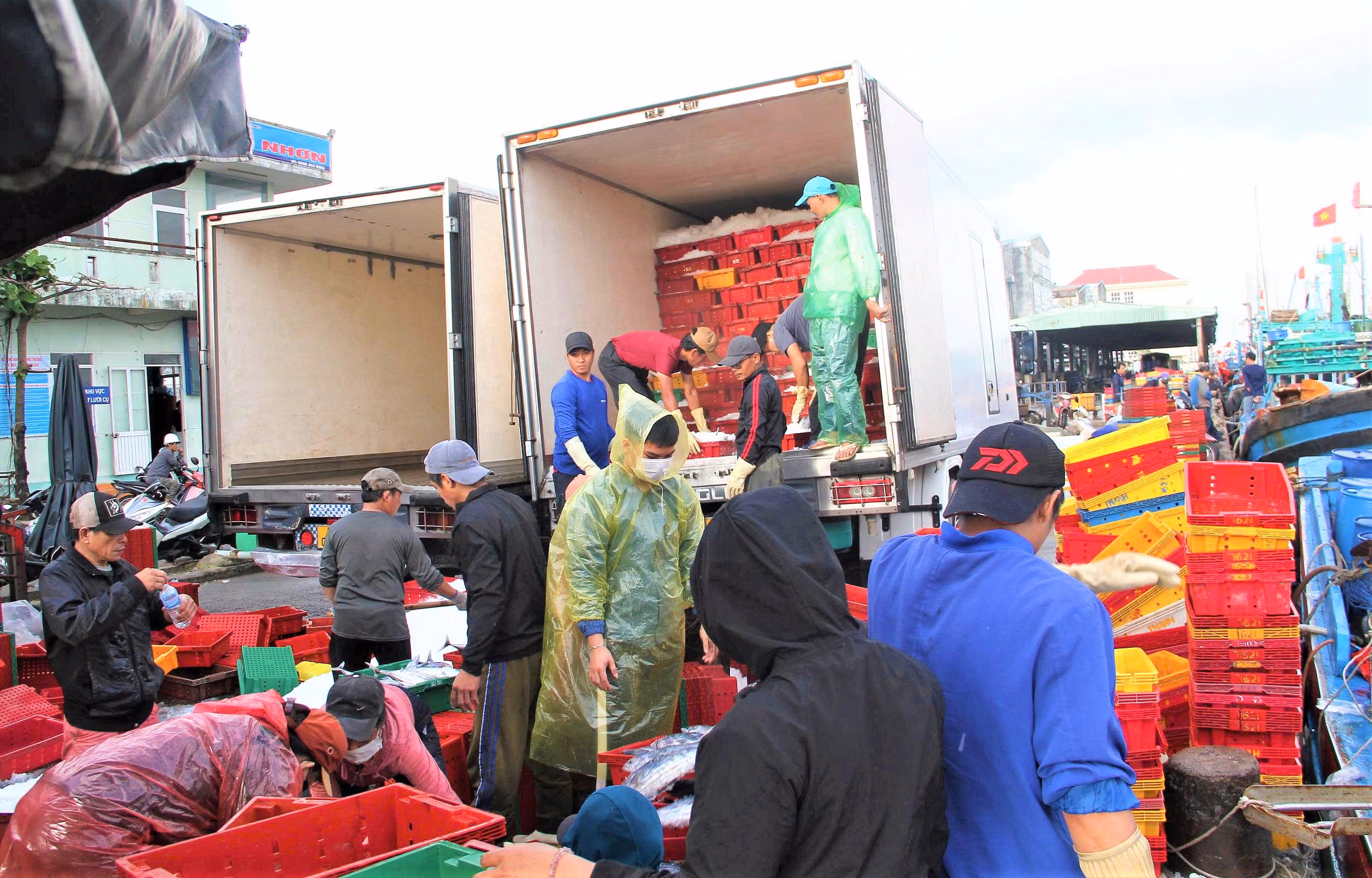 Qua quan sát của chúng tôi, tất cả các tàu cá khi vào bến, các thuyền viên cùng nhân công nhanh chóng vận chuyển những sọt nhựa chứa đầy hải sản lên sàn tàu, rồi phân loại, giá cả tùy theo kích cỡ, độ tươi. Như cá ngừ sọc dưa có giá từ 70 đến 80.000 đồng/kg; cá thu có giá từ 150.000 đến trên 300.000 đồng/kg; cá hố tươi có giá 100.000 đến 180.000 đồng/kg… Sau đó các loại hải sản này nhanh chóng được đưa lên bờ, đưa thẳng lên xe đông lạnh để tiểu thương vận chuyển đến nhiều nơi tiêu thụ.