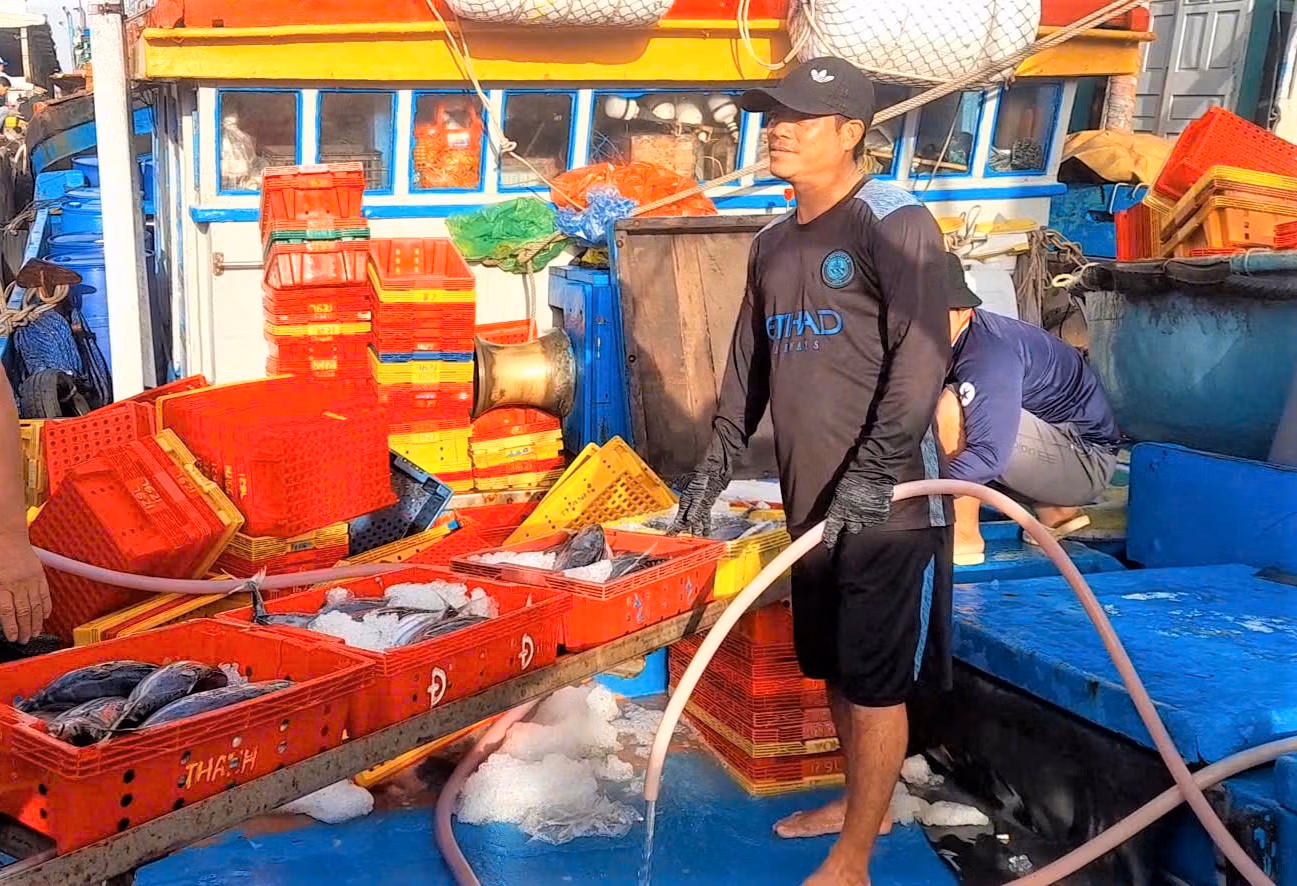 Ngư dân Nguyễn Văn Thượng cho biết, sau những ngày dài bám biển khơi, 2 con tàu của ông vừa về cập cảng an toàn, mang theo hơn 75 tấn cá ngừ các loại, chủ yếu là cá ngừ sọc dừa, khoang tàu đầy ắp hải sản tươi rói. Với ông và bạn thuyển, việc tàu thuyền cập cảng an toàn, hải sản được mùa và bán được giá ngay trong những ngày đầu năm mới là tín hiệu rất tích cực.