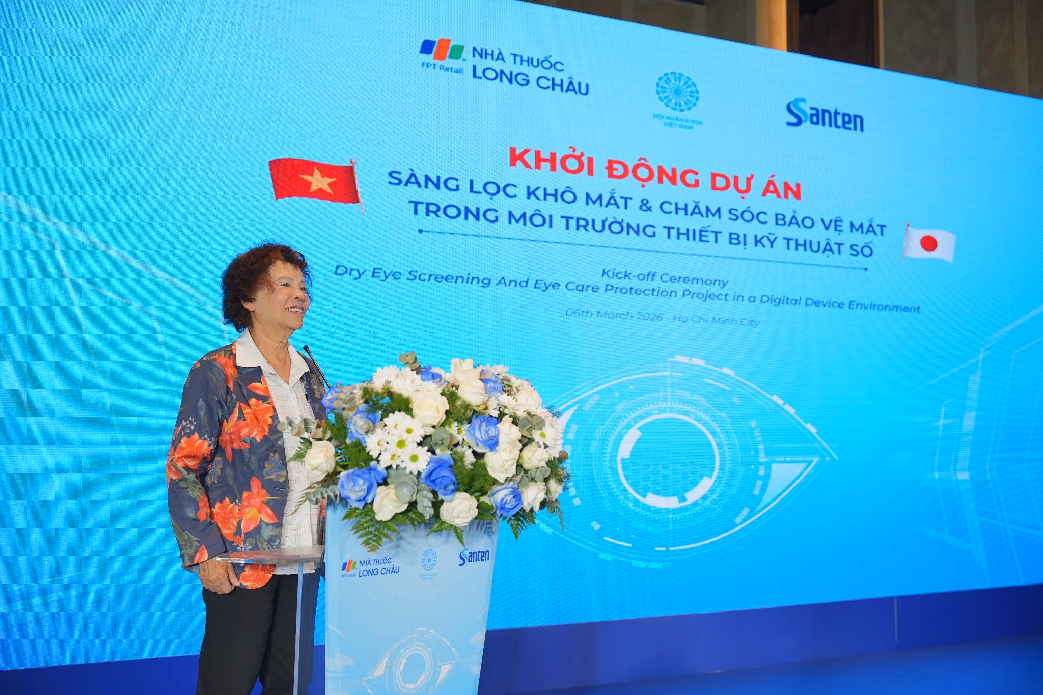 Trong bối cảnh khô mắt trở thành vấn đề sức khỏe cộng đồng đáng quan tâm, ngày 6/3, Hệ thống nhà thuốc và trung tâm tiêm chủng Long Châu đã hợp tác cùng Santen - thương hiệu dược phẩm nhãn khoa hàng đầu Nhật Bản khởi động dự án “Sàng lọc khô mắt; Chăm sóc bảo vệ mắt trong môi trường thiết bị kỹ thuật số” quy mô toàn quốc.