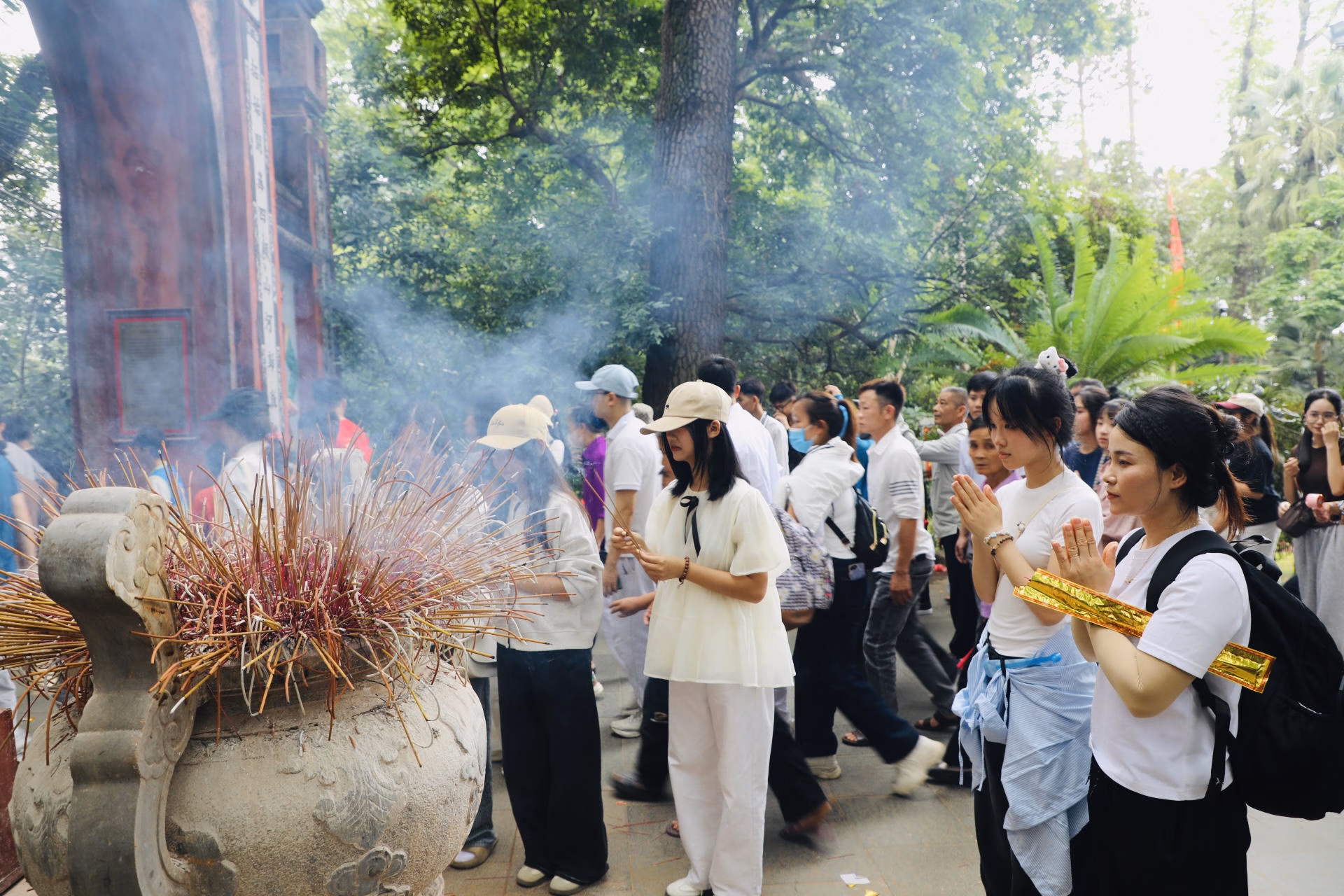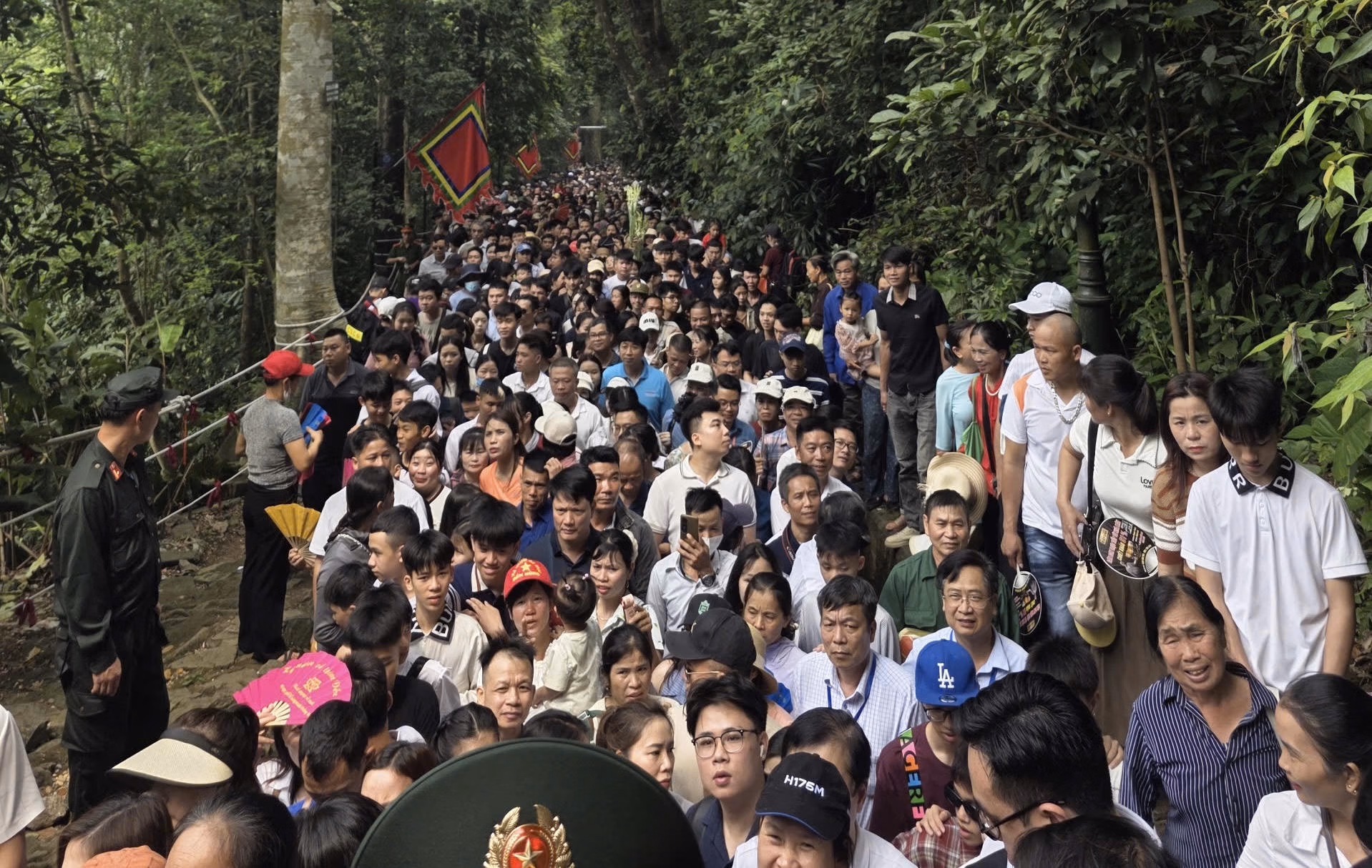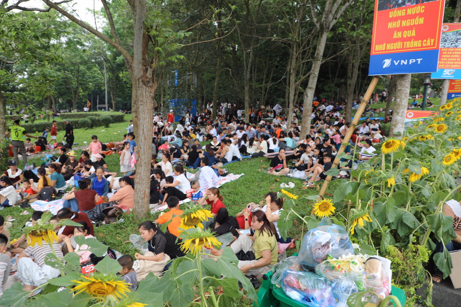 Rất nhiều du khách đã rải chiếu hoặc ngồi, nằm trực tiếp lên cỏ vệ rừng, trong khi phần đông ngồi kín các quán hàng nước trong Khu Di tích. Lực lượng chức năng đảm bảo an ninh trật tự được tăng cường, trong đó có nhiều đoàn viên, thanh niên phối hợp hỗ trợ, hướng dẫn du khách.
