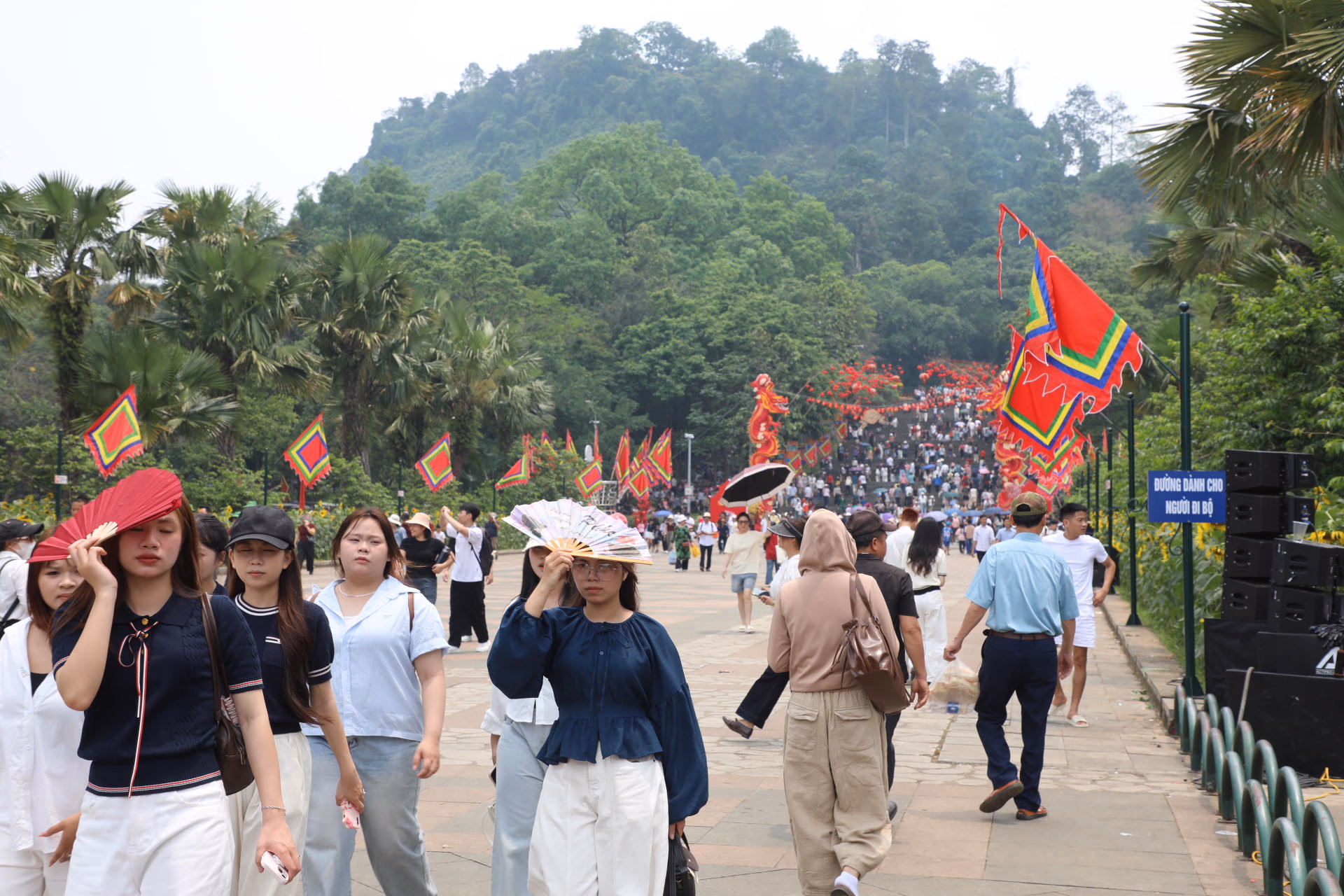 Đền Hùng sáng 25/4 (tức ngày 9/3 âm lịch) nghẹt khách với khoảng 1,5 triệu người hành hương, bãi xe chật cứng, dòng người đổ về không ngớt. Tại phường Việt Trì (Phú Thọ) cũng sôi động với nhiều hoạt động lễ hội.