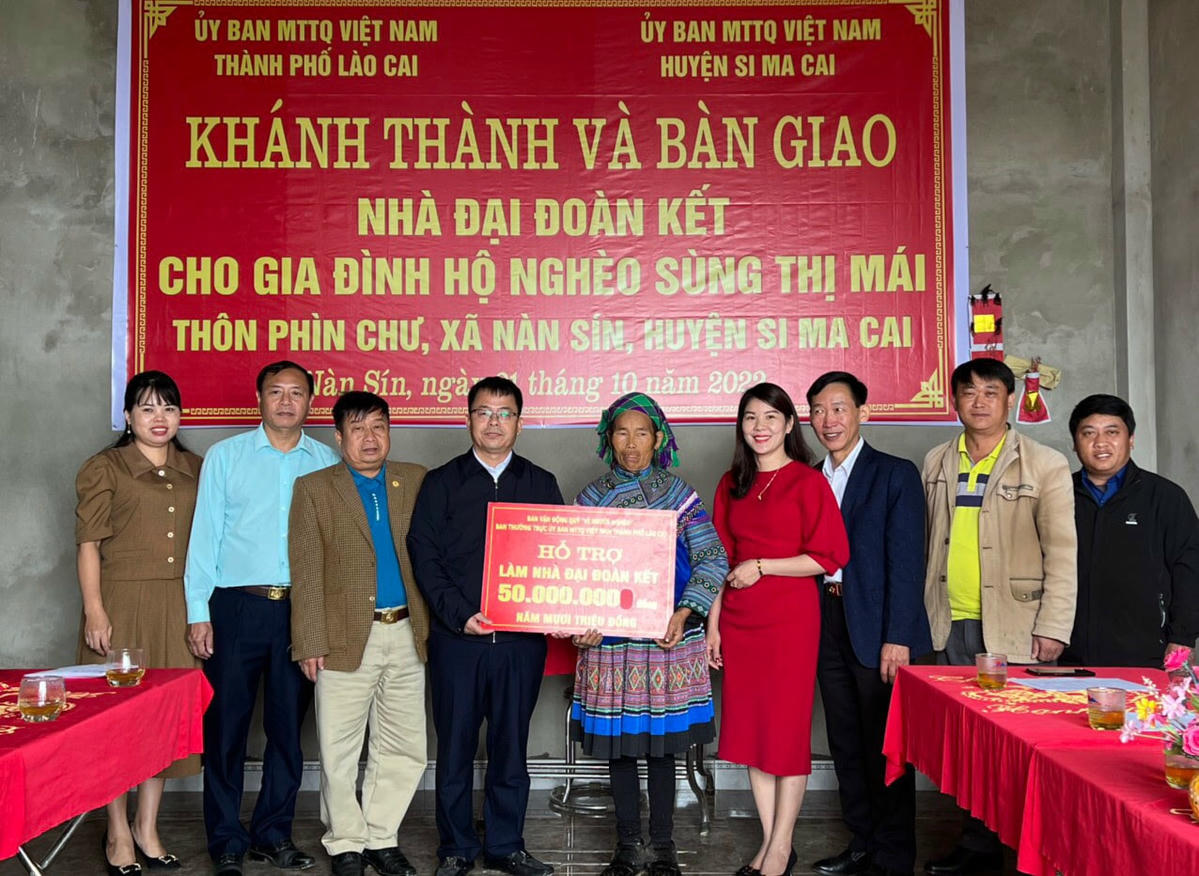 Từ đầu năm đến nay, thông qua nguồn Quỹ “Vì người nghèo” và xã hội hóa, MTTQ các cấp trên địa bàn tỉnh Lào Cai đã hỗ trợ xây mới 112 nhà Đại đoàn kết, sửa chữa 70 ngôi nhà cho các hộ nghèo, hộ có hoàn cảnh khó khăn với tổng giá trị gần 4,2 tỷ đồng.