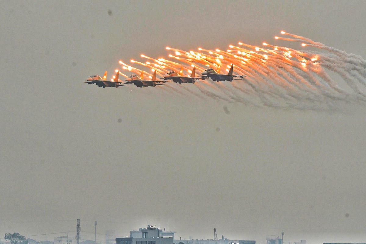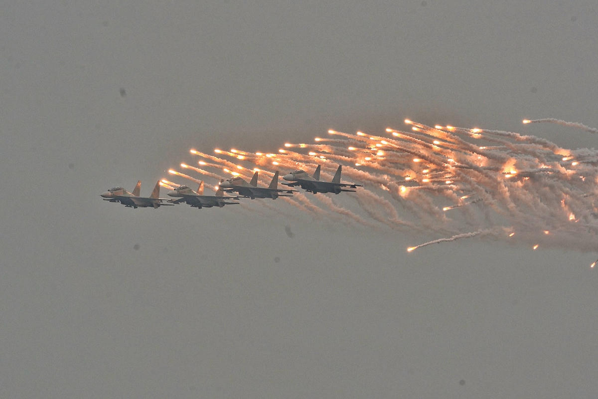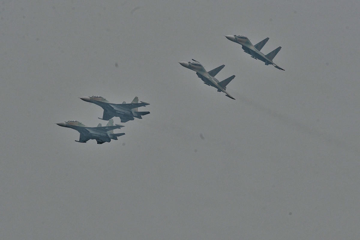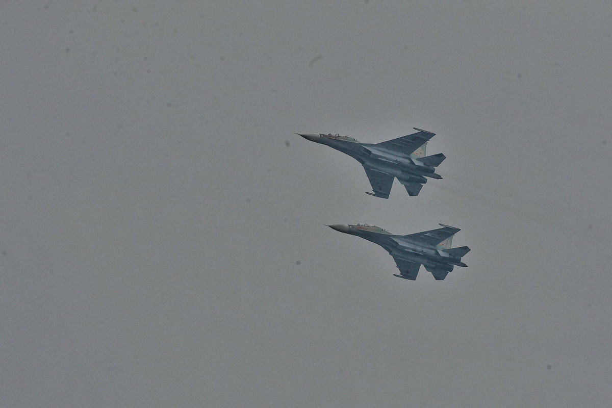 Sáng 8/12, người dân không khỏi trầm trồ, thích thú khi được xem các máy bay chiến đấu Su-30MK2 thực hành thao diễn tại Lễ khai mạc Triển lãm Quốc phòng quốc tế 2022.