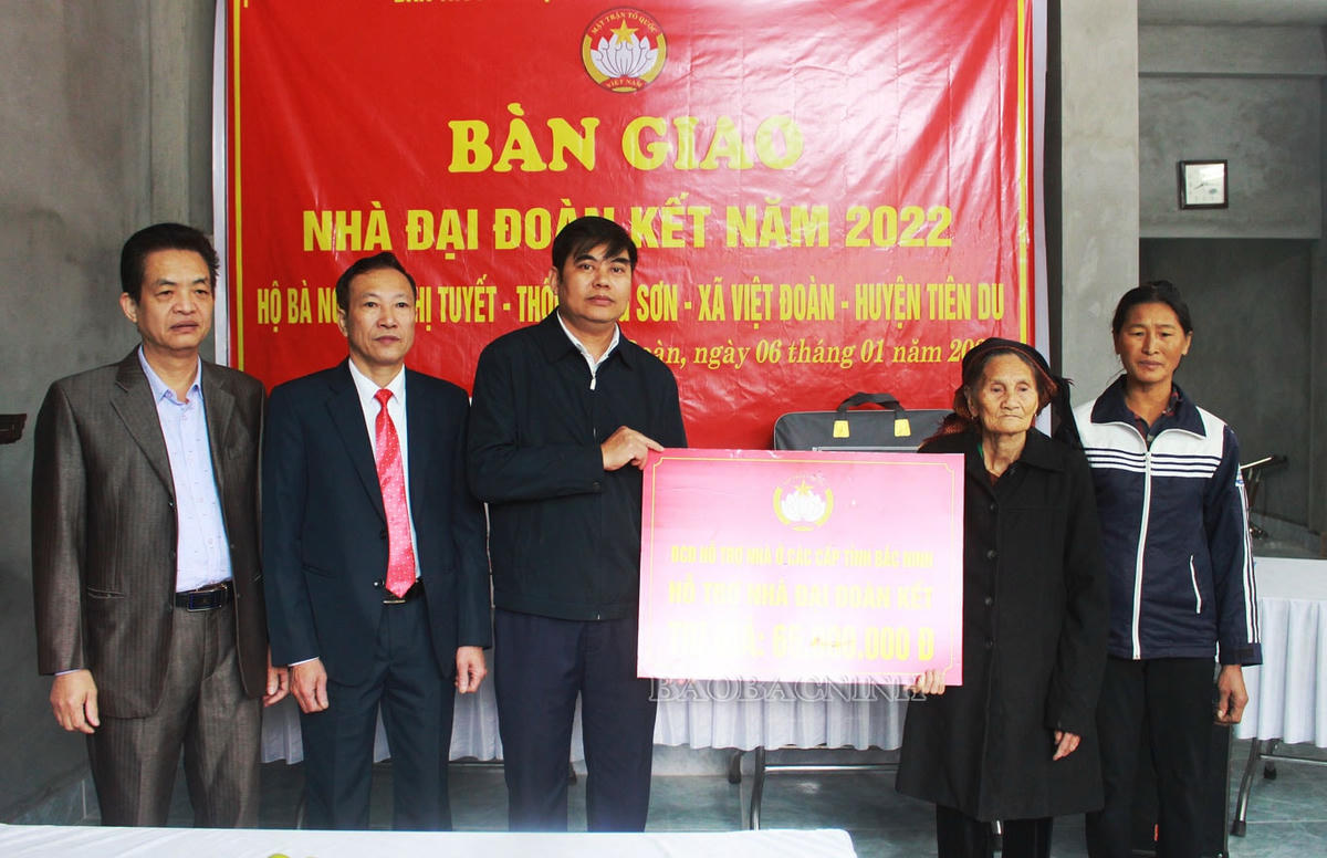 Những ngày đầu năm 2023, gia đình chị Nguyễn Thị Tuyết - thôn Đông Sơn, xã Việt Đoàn, huyện Tiên Du dọn về sinh sống trong ngôi nhà Đại đoàn kết do Mặt trận hỗ trợ xây dựng. Là hộ nghèo đặc biệt khó khăn, bản thân lại bị bệnh tim bẩm sinh, chồng mất sớm, một mình chị Tuyết phải nuôi mẹ già và 3 con ăn học. Hoàn cảnh khó khăn nên với chị việc xây dựng một nơi ở mới thay thế cho ngôi nhà cấp 4 đã xuống cấp thực sự rất xa vời.