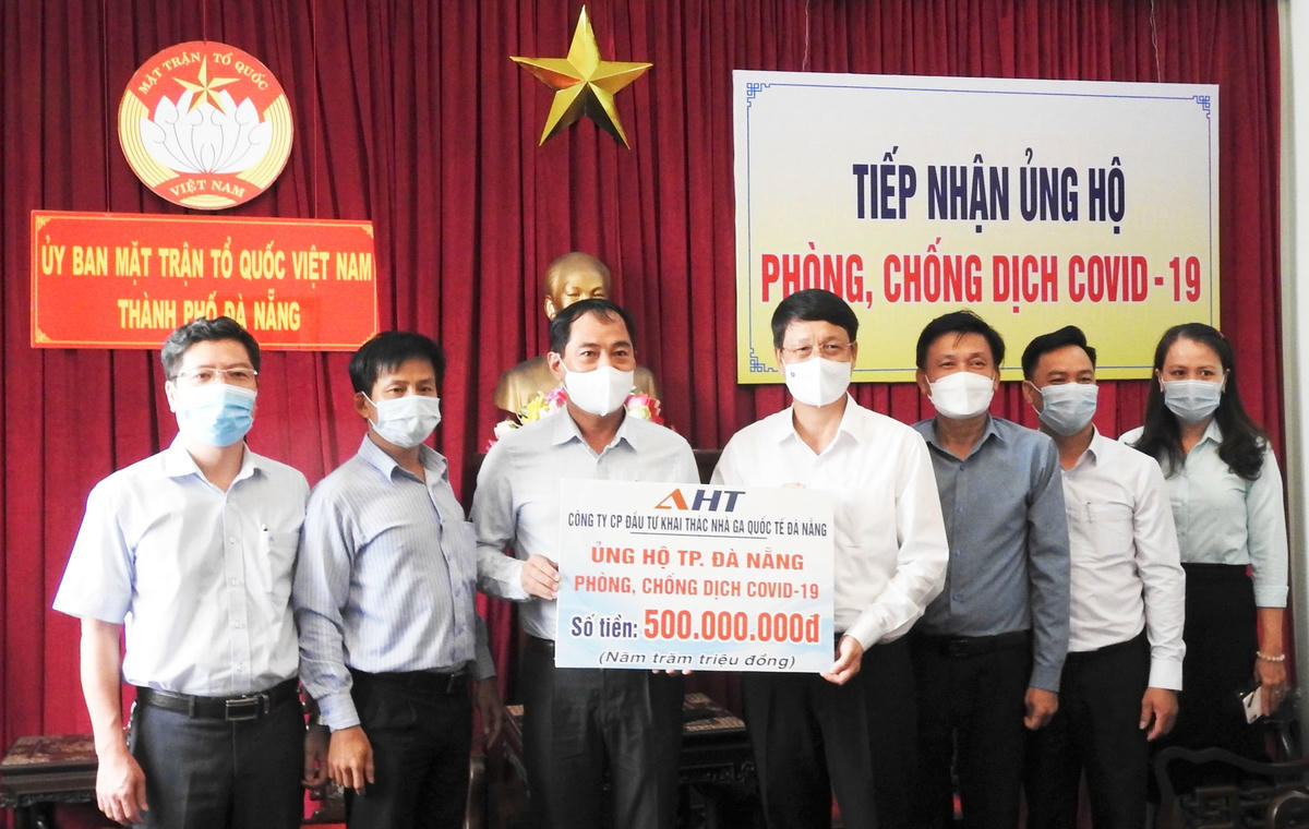 Công ty CP đầu tư xây dựng hạ tần Nam Việt Á 1 tỷ đồng; VNPT Đà Nẵng 150 triệu đồng; Công ty CP dược phẩm CPC 1 Hà Nội- chi nhánh Đà Nẵng 960 chai dung dịch sát khuẩn Gel khô loại 120ml/chai.