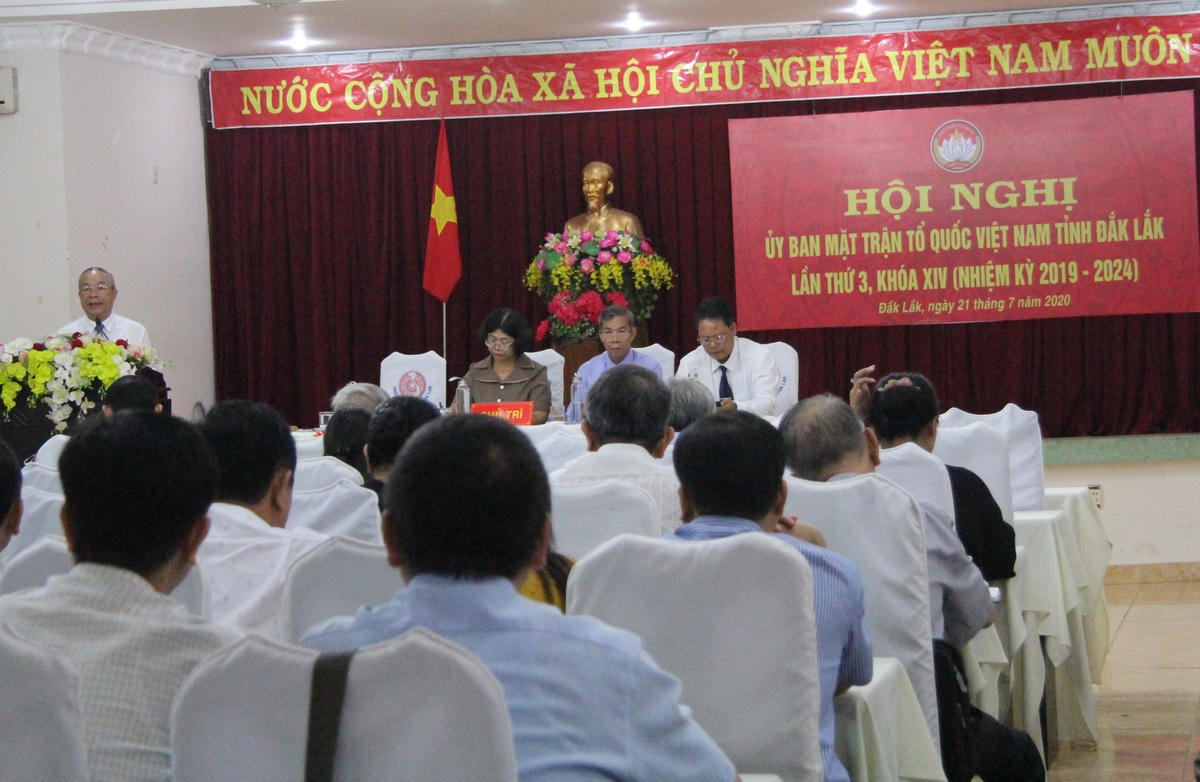 Sáng 21/7, Ủy ban MTTQ Việt Nam tỉnh Đắk Lắk tổ chức Hội nghị lần thứ 3, khóa XIV (nhiệm kỳ 2019-2024) nhằm sơ kết công tác mặt trận 6 tháng đầu năm và triển khai chương trình thống nhất 6 tháng cuối năm 2020.