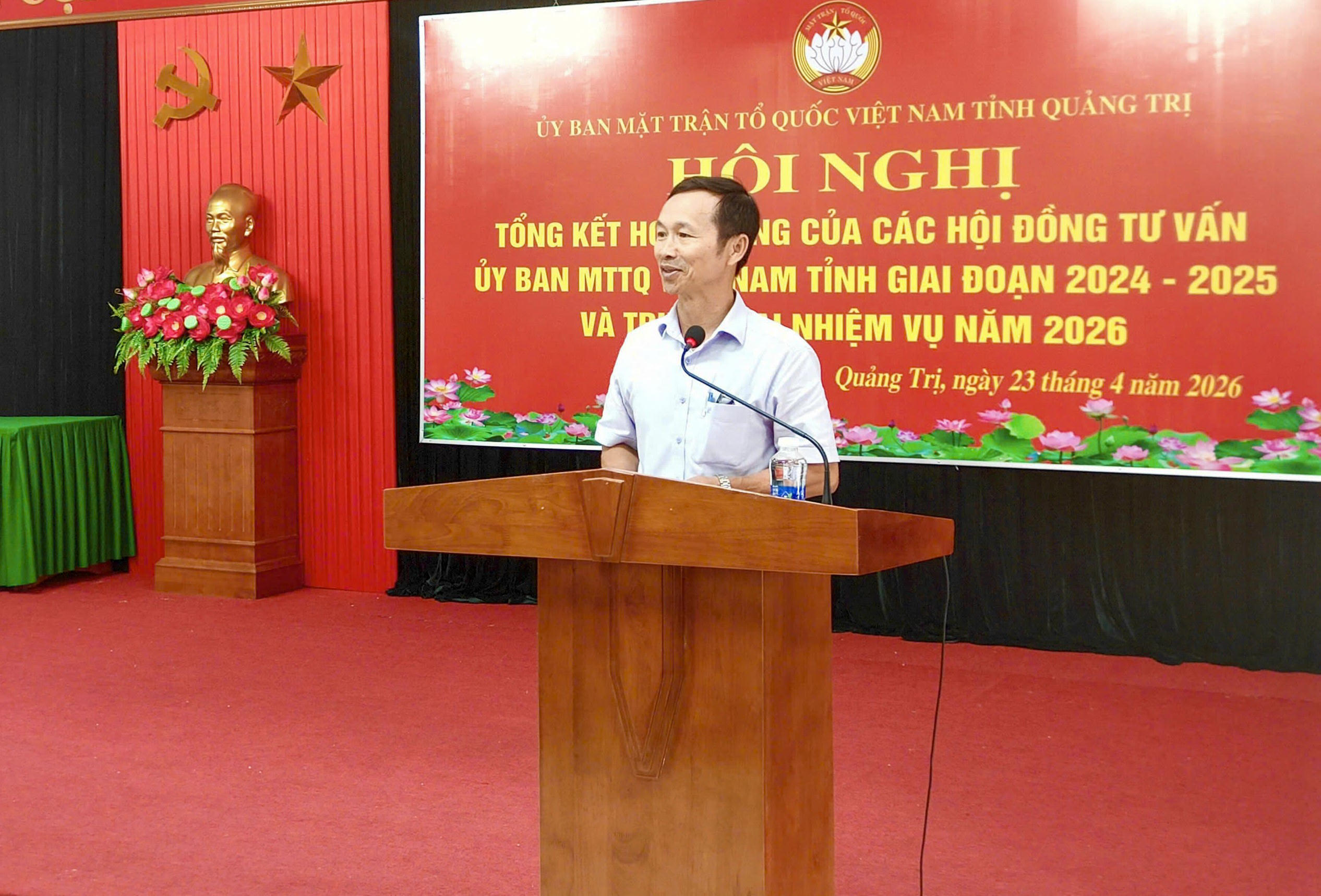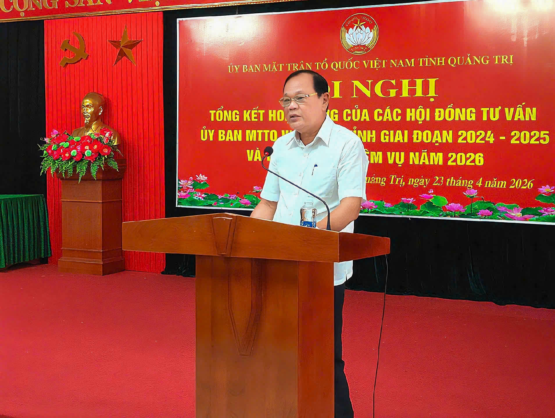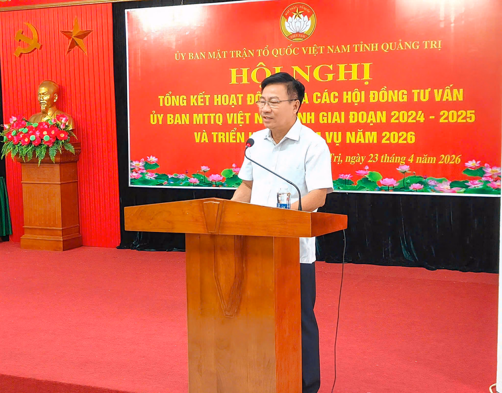 Ngày 23/4, Ủy ban MTTQ Việt Nam tỉnh Quảng Trị tổ chức hội nghị tổng kết hoạt động của các Hội đồng tư vấn Ủy ban MTTQ Việt Nam tỉnh Quảng Trị giai đoạn 2024 - 2025 và triển khai nhiệm vụ năm 2026 (hội nghị).