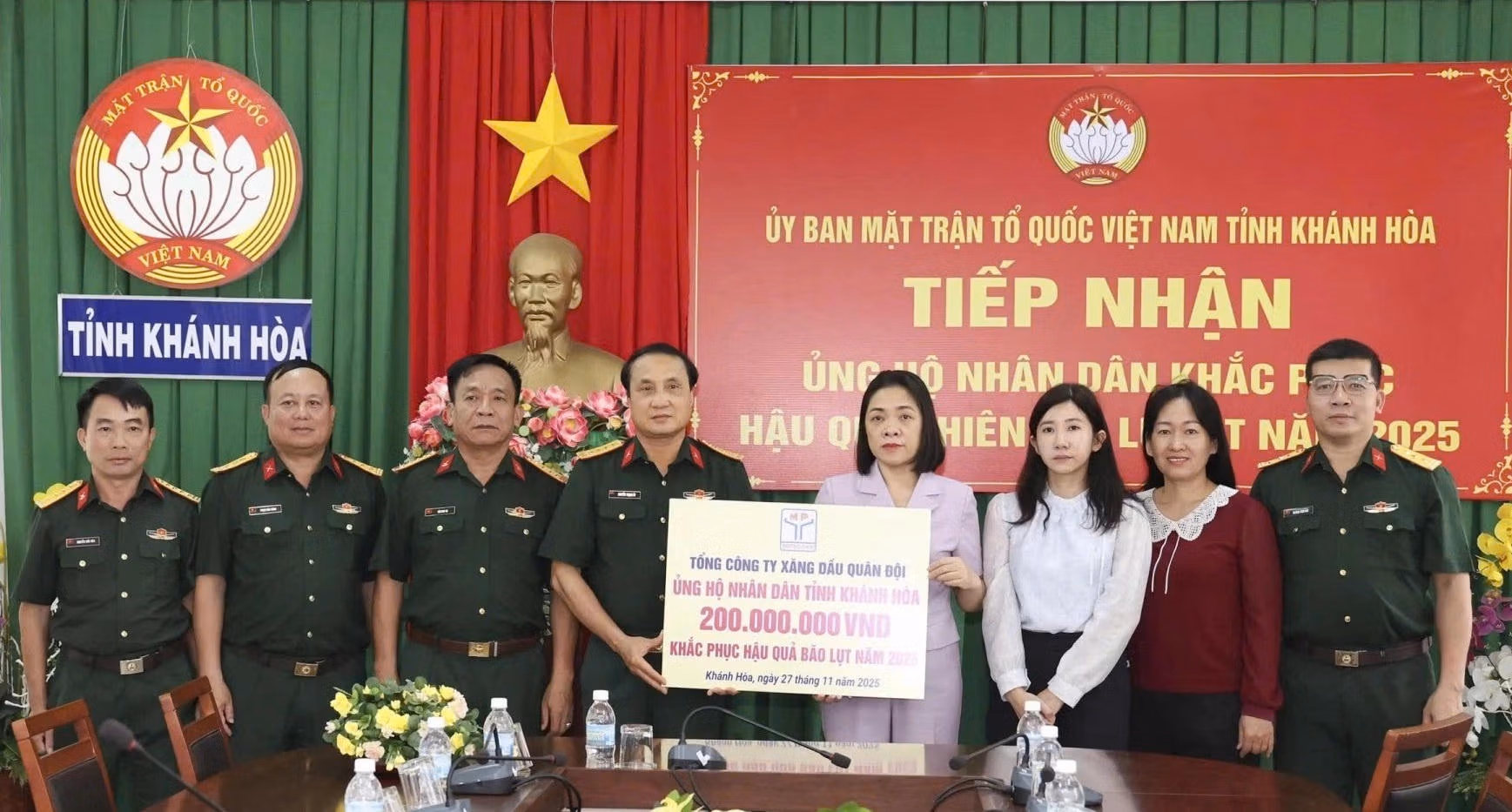 Ngày 27/11, Ủy ban MTTQ Việt Nam tỉnh Khánh Hòa tổ chức tiếp nhận 900 triệu đồng kinh phí ủng hộ khắc phục thiệt hại do mưa lũ từ các doanh nghiệp.