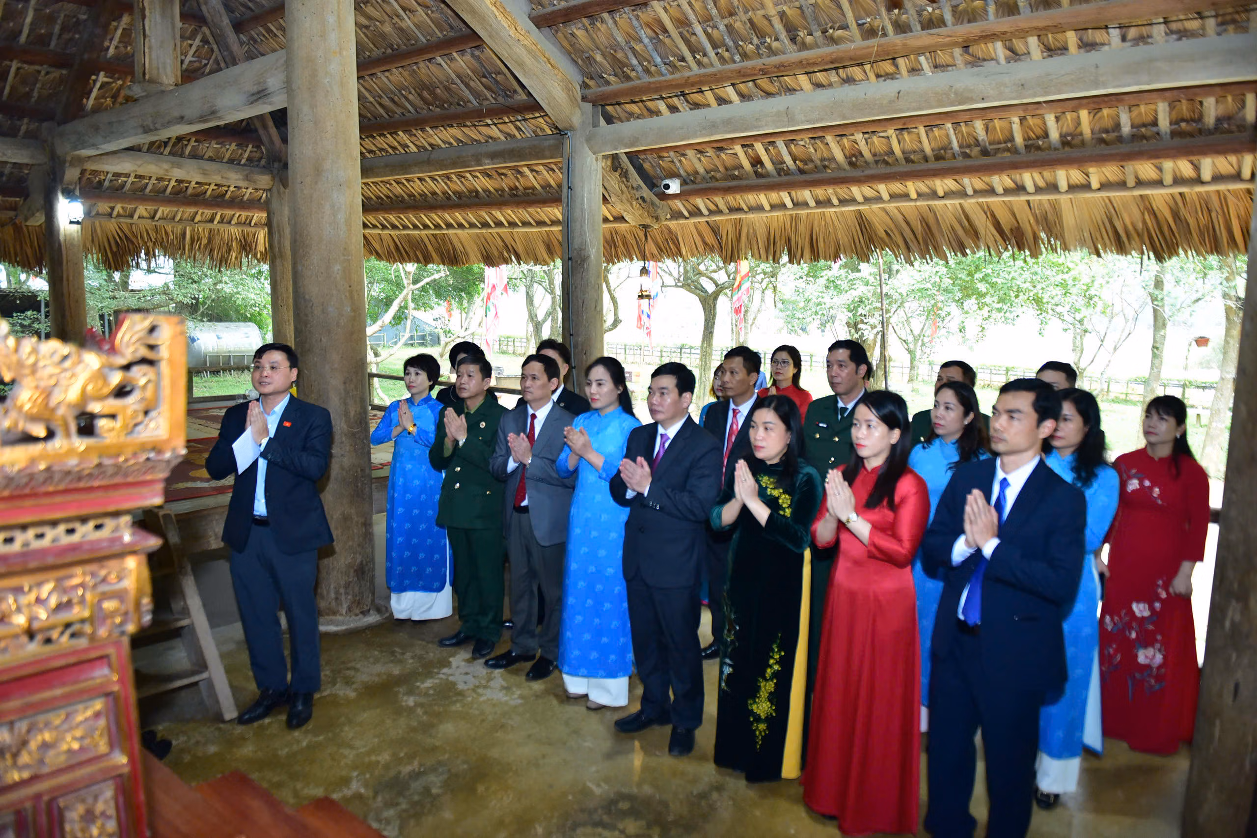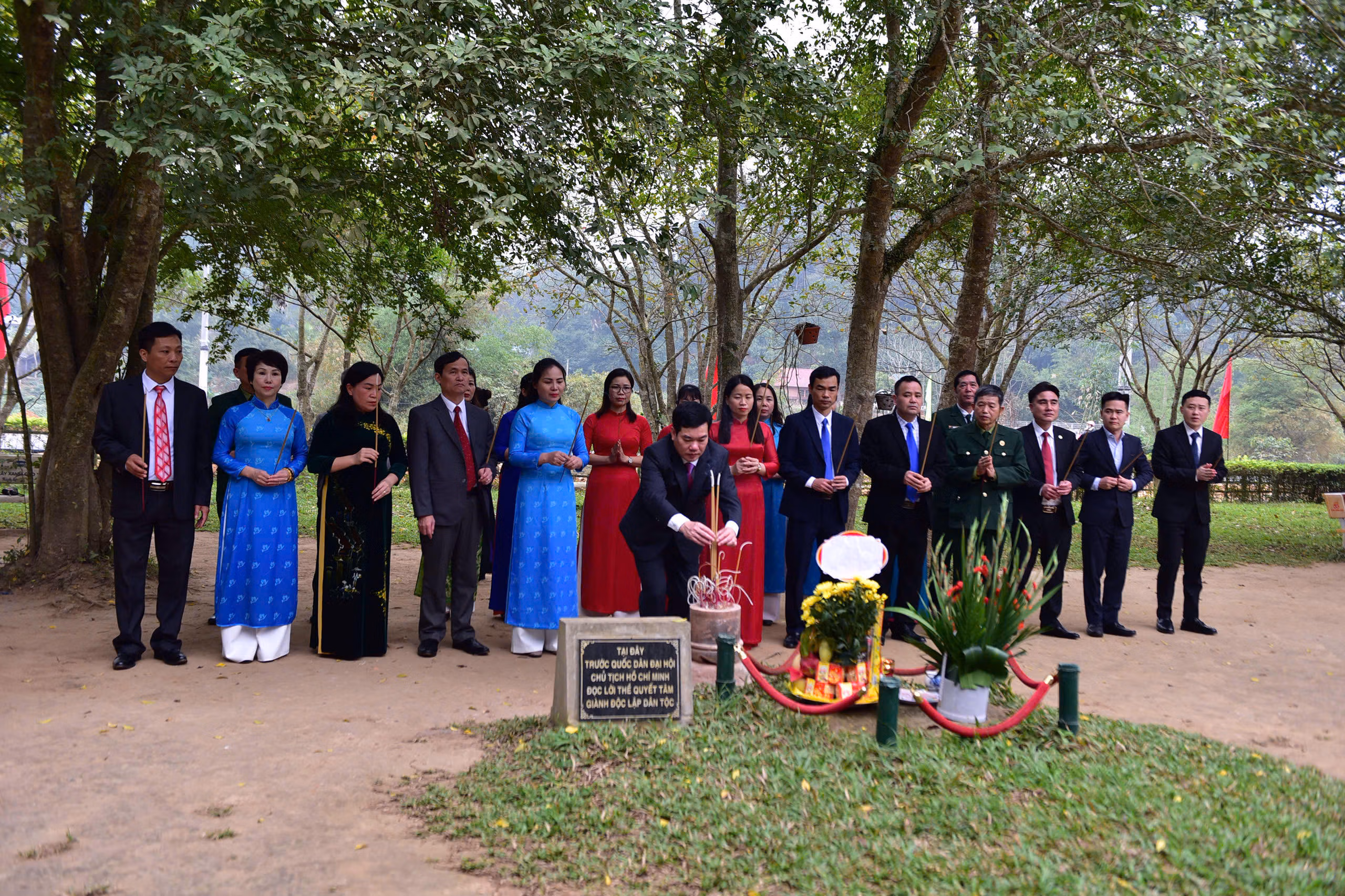Từ Quảng trường Nguyễn Tất Thành, Đoàn đại biểu tiếp tục hành trình về Khu di tích quốc gia đặc biệt Tân Trào - nơi ghi dấu những quyết sách trọng đại của cách mạng Việt Nam. Tại Đình Tân Trào, Lán Nà Nưa, Đền thờ Bác Hồ và Khu tưởng niệm các vị tiền bối cách mạng, từng nén hương được thắp lên với tất cả sự tri ân và niềm xúc động sâu sắc.