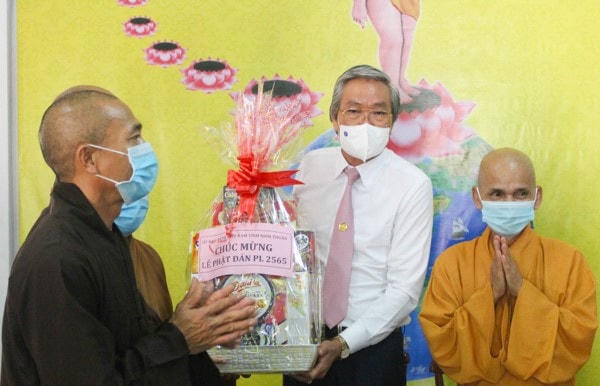 Nhân dịp Đại lễ Phật đản 2021– Phật lịch 2565, chiều 24/5, ông Lê Văn Bình, UVTV Tỉnh ủy, Chủ tịch Ủy ban MTTQ Việt Nam tỉnh Ninh Thuận dẫn đầu đoàn đã đến thăm, chúc mừng: Ban trị sự Giáo hội Phật giáo Việt Nam tỉnh Ninh Thuận; Hòa thượng Thích Hạnh Thể, Trưởng Ban trị sự Giáo hội Phật giáo Việt Nam tỉnh Ninh Thuận; Hòa thượng Thích Đồng Tâm, chùa Linh Sơn, phường Đô Vinh (Tp. Phan Rang – Tháp Chàm).
