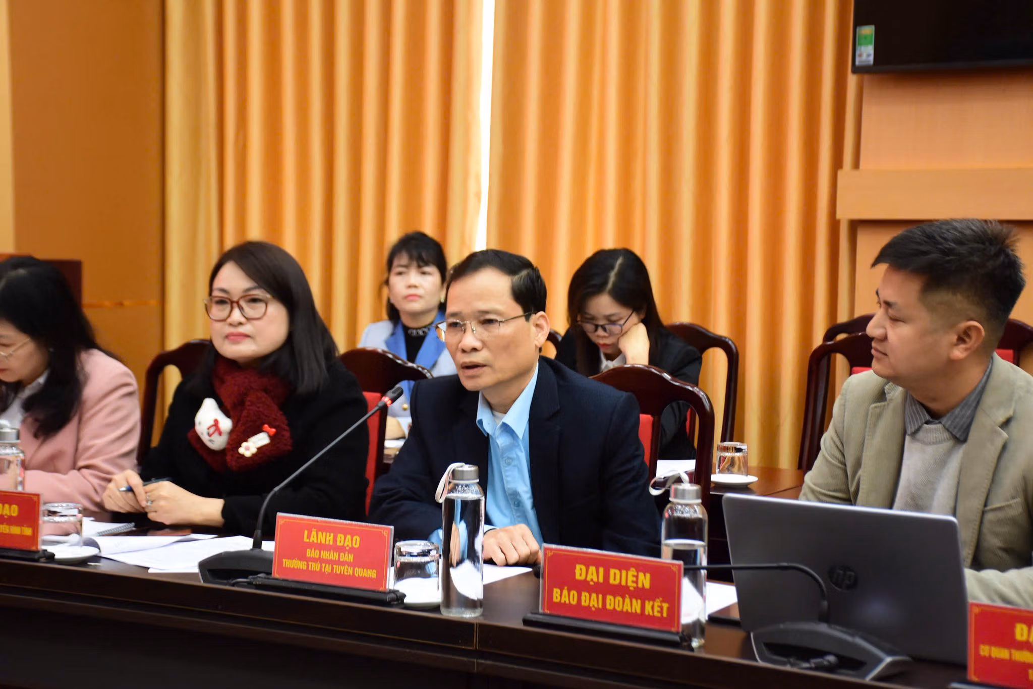 Tại hội nghị, đại diện Báo Đại đoàn kết tại Tuyên Quang nêu ý kiến cho rằng: thời gian qua, sự phối hợp giữa MTTQ Việt Nam tỉnh Tuyên Quang và Báo Đại đoàn kết nhìn chung là rất tốt, cởi mở, tạo điều kiện cho phóng viên tác nghiệp. Nhiều chương trình, mô hình hay, hoạt động cụ thể, thiết thực của Mặt trận các cấp đã được báo Đại đoàn kết phản ánh kịp thời, lan tỏa tích cực.