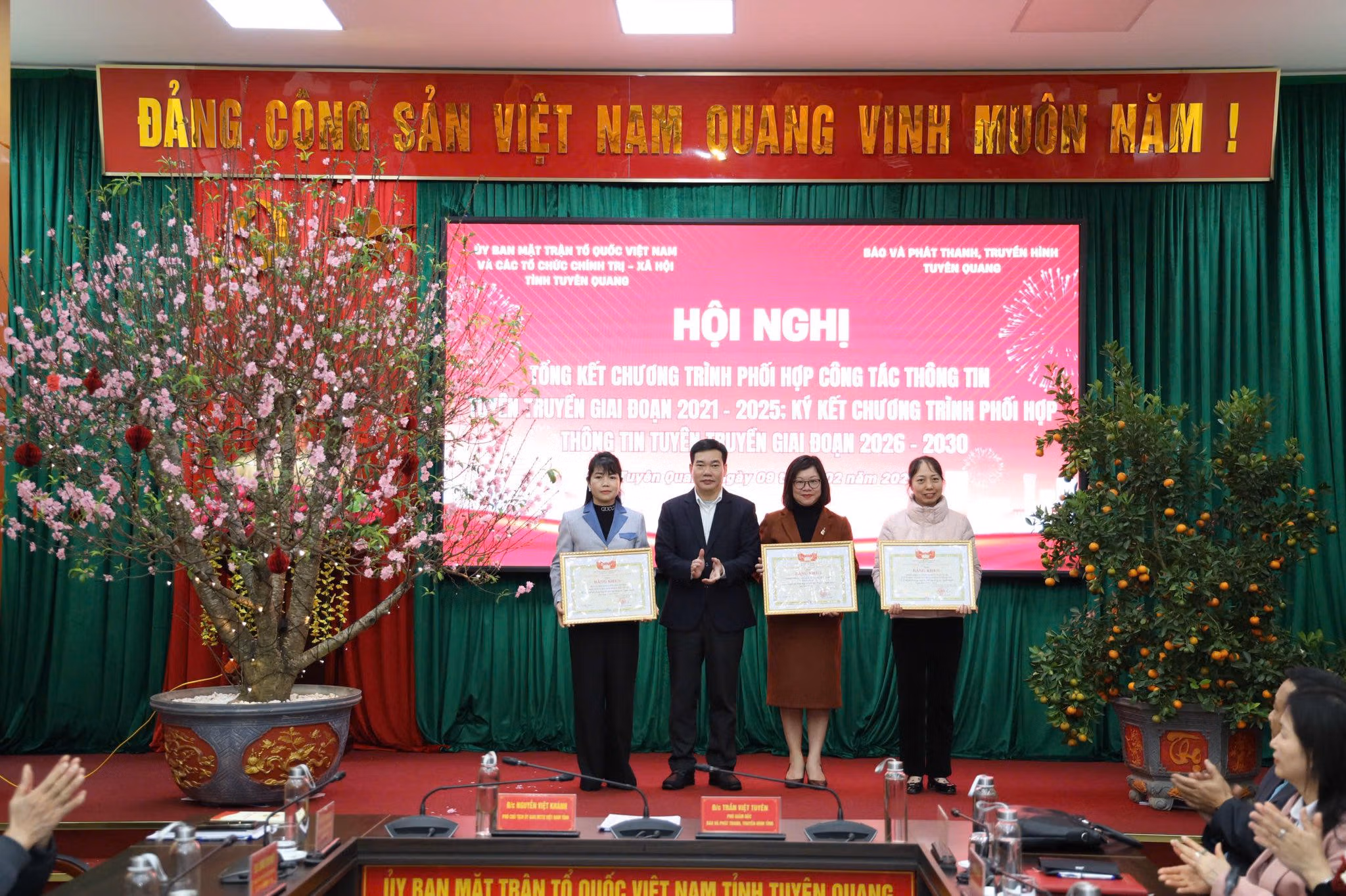 Nhân dịp này, Ủy ban MTTQ Việt Nam tỉnh Tuyên Quang đã trao bằng khen cho 3 tập thể và 9 cá nhân có thành tích trong công tác phối hợp thông tin, tuyên truyền giai đoạn 2021-2025.