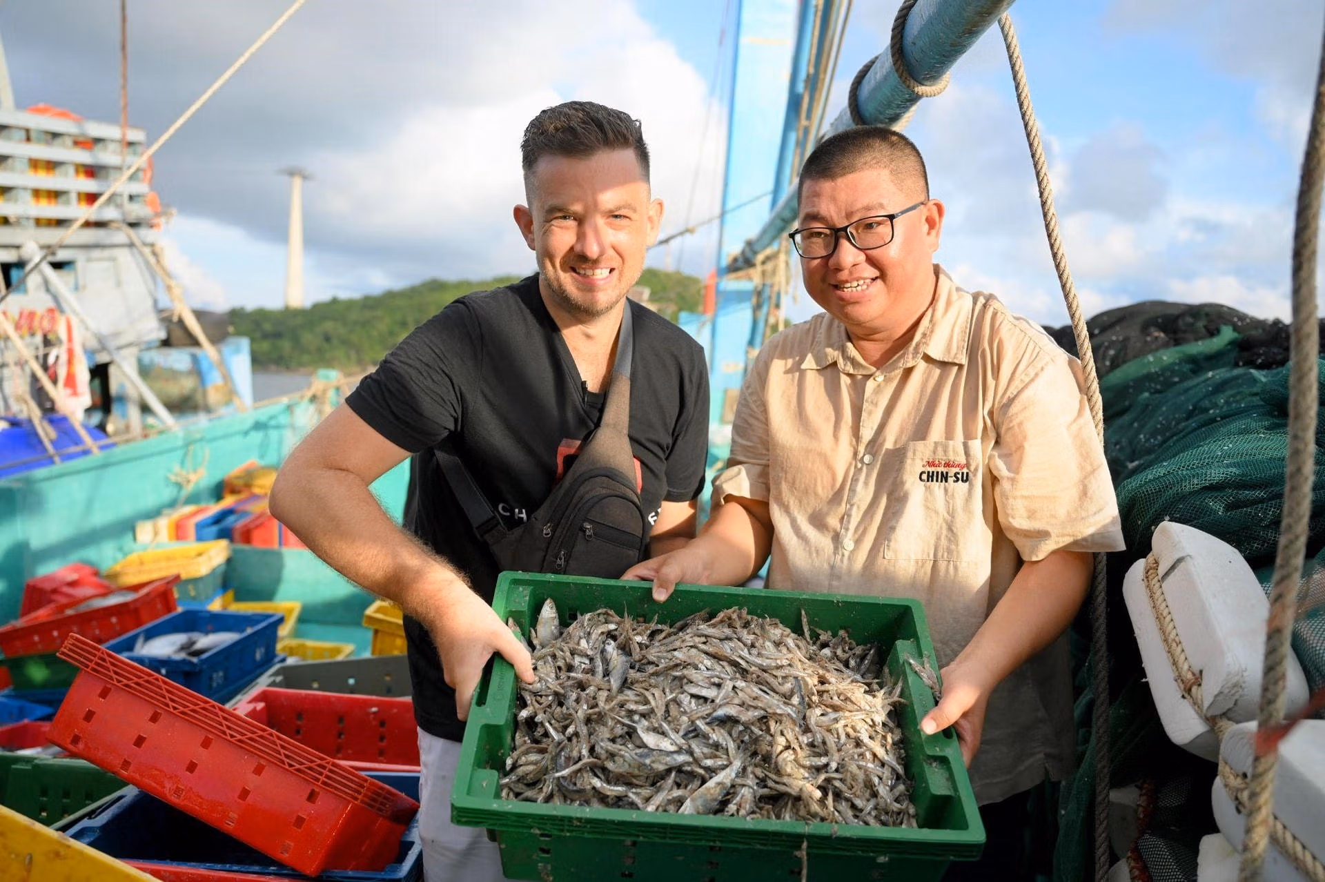 Tại cảng An Thới, Chad được giới thiệu về bước đầu tiên trong quy trình làm nước mắm: lựa chọn cá cơm. Đặc biệt, thuyền sẽ chở muối theo dùng để ướp trực tiếp vào cá cơm vừa bắt lên để giữ được độ tươi ngon chắc mẩy. Loại muối mang theo này cũng là loại đặc biệt tuyển chọn từ Bà Rịa, và phải để muối “thở” trong ít nhất 3 tháng trước khi sử dụng nhằm mang lại vị mặn đằm không đắng gắt.