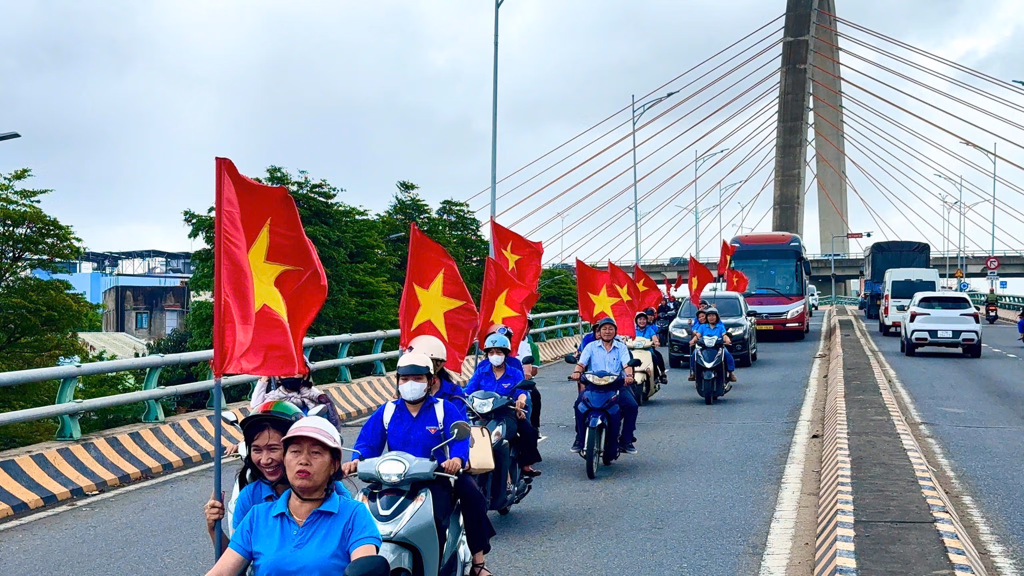 Trong khi đó những ngày này, ở các phường và khu vực đồng bằng của miền Trung khắp nơi rực rỡ cờ hoa, nhất là khu vực trung tâm phố thị trang trí rực rỡ sắc màu của những pano, áp phích, khẩu hiệu chào mừng.