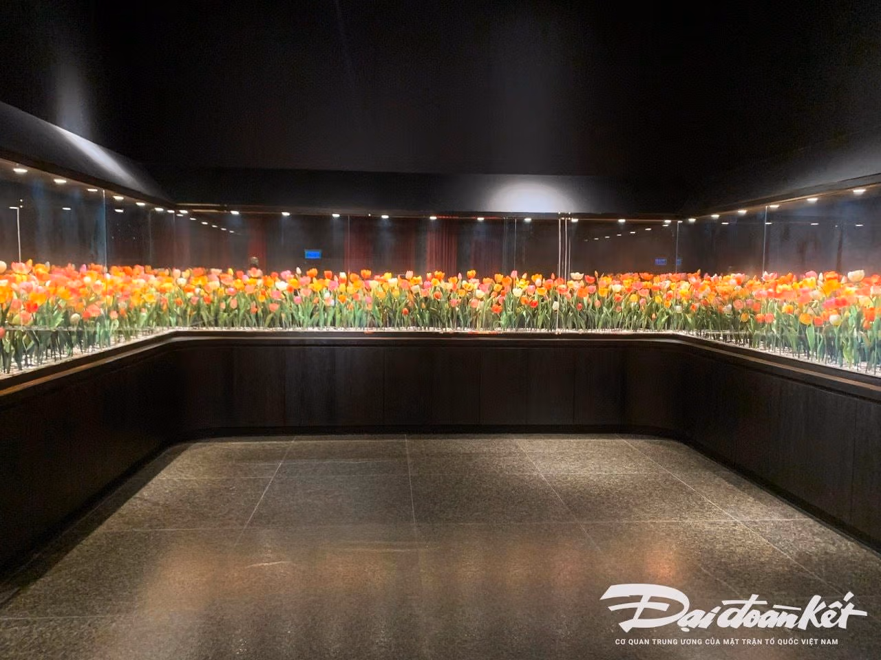 Dạo thêm bên trong là rặng hoa tulip rực rỡ sắc màu. Từng bông hoa, cái lá đều được nắn với kích thước như thật. Từ khu trưng bày, bước chân du khách đến với khu trưng bày cuối cùng tại tầng trệt, với các sản phẩm ngoại cỡ độc đáo, lý thú.