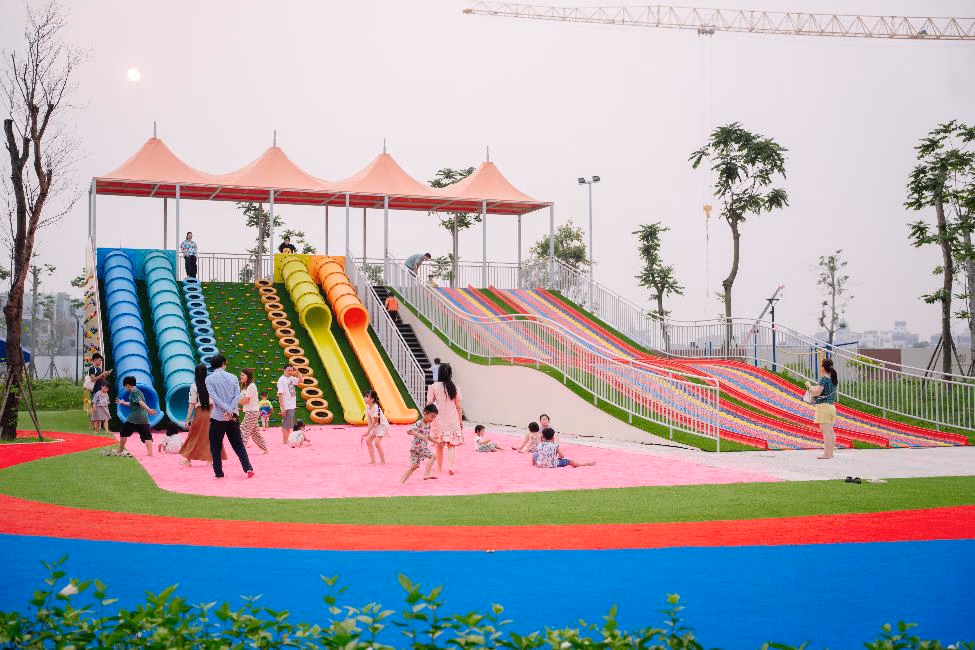 Giá trị này càng được nâng cao khi đặt trong hệ sinh thái cảnh quan quy mô lớn với gần 25ha công viên, mặt nước và hồ sinh thái 19ha. Không gian sống được tổ chức đa lớp, từ vận động, thư giãn đến kết nối cộng đồng. Các khu thể thao, đường dạo bộ ven kênh duy trì nhịp sống năng động, trong khi những không gian thiền, yoga và cảnh quan mặt nước mang lại sự cân bằng thể chất và tinh thần. Xen kẽ là các khu BBQ, sân chơi đa thế hệ, góp phần hình thành cộng đồng cư dân gắn kết.