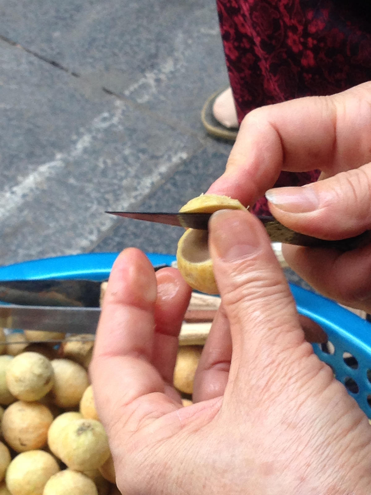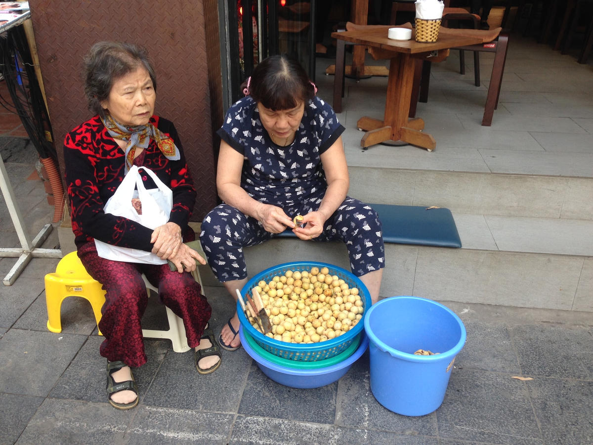 Những người đàn ông như là vừa hái sấu chín xuống ngồi đợi khách qua đường dừng lại mua. Tôi thì không tin lắm rằng những cây sấu già phố Phan Đình Phùng còn nhiều trái sấu chín đợi thu về như thế. Bởi từ khi sấu còn xanh, ngày qua ngày, người ta đã chực chờ trèo lên tít các cành cao mà vít mà bẻ mà hái. Nhưng nhìn những túi sấu chín vàng đựng trong chiếc túi nilon thì vẫn thấy hương sắc mùa thu Hà Nội.